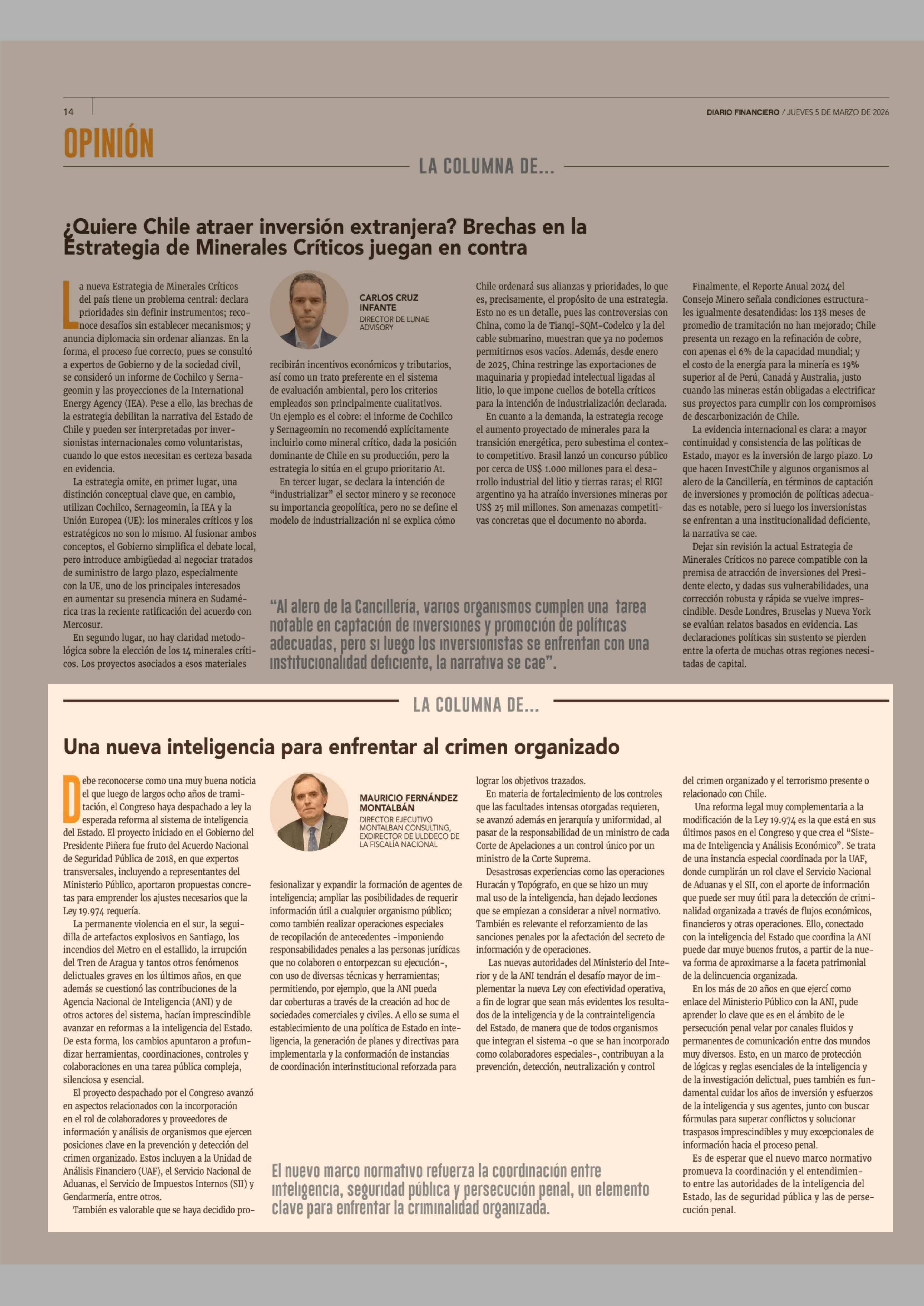 Título: Columnas de Opinión: Una nueva inteligencia para enfrentar al crimen organizado