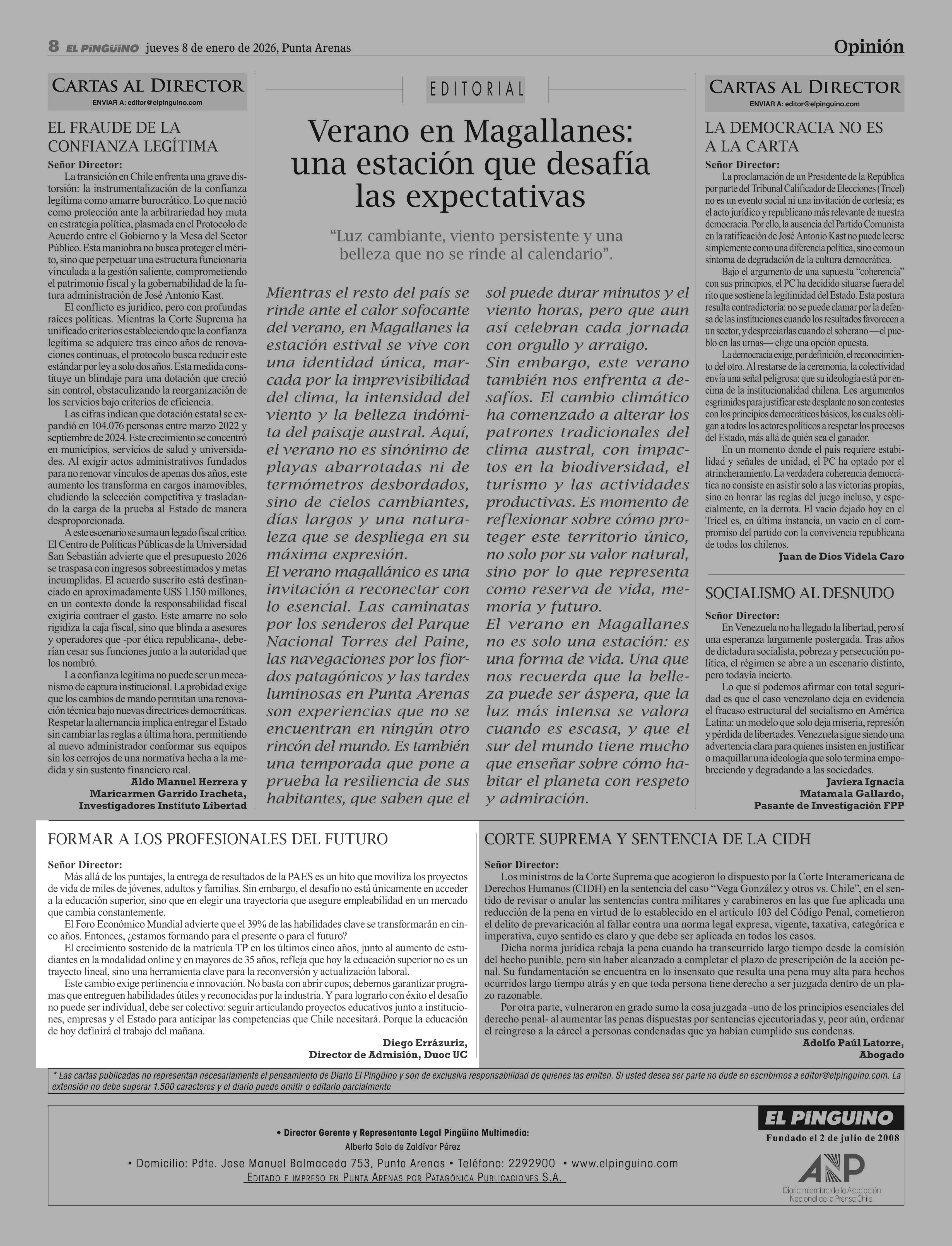 Cartas: FORMAR A LOS PROFESIONALES DEL FUTURO 08-01-2026 El Pingüino |