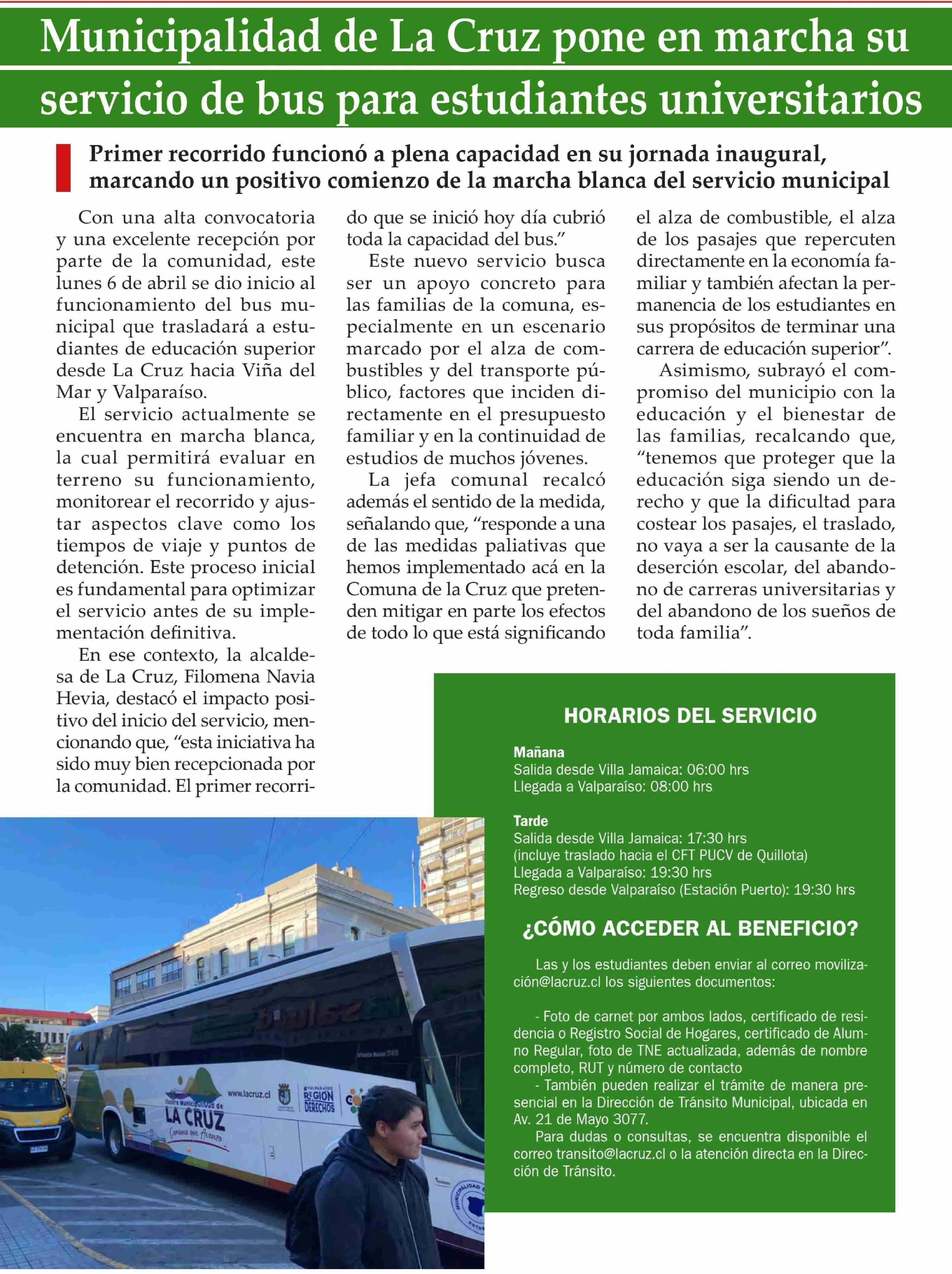 Título: Municipalidad de La Cruz pone en marcha su servicio de bus para estudiantes universitarios