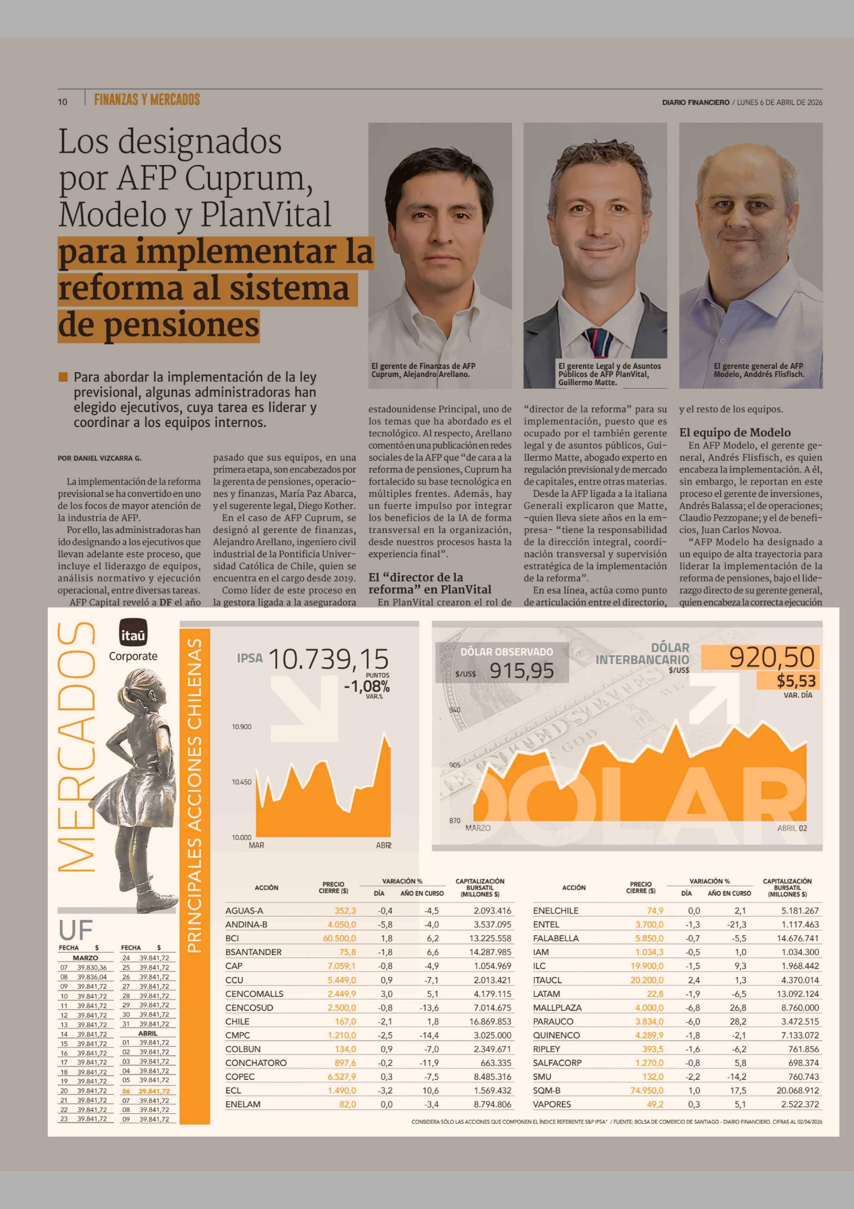 Fuente: Diario Financiero (Diario Financiero) Página(s): 10