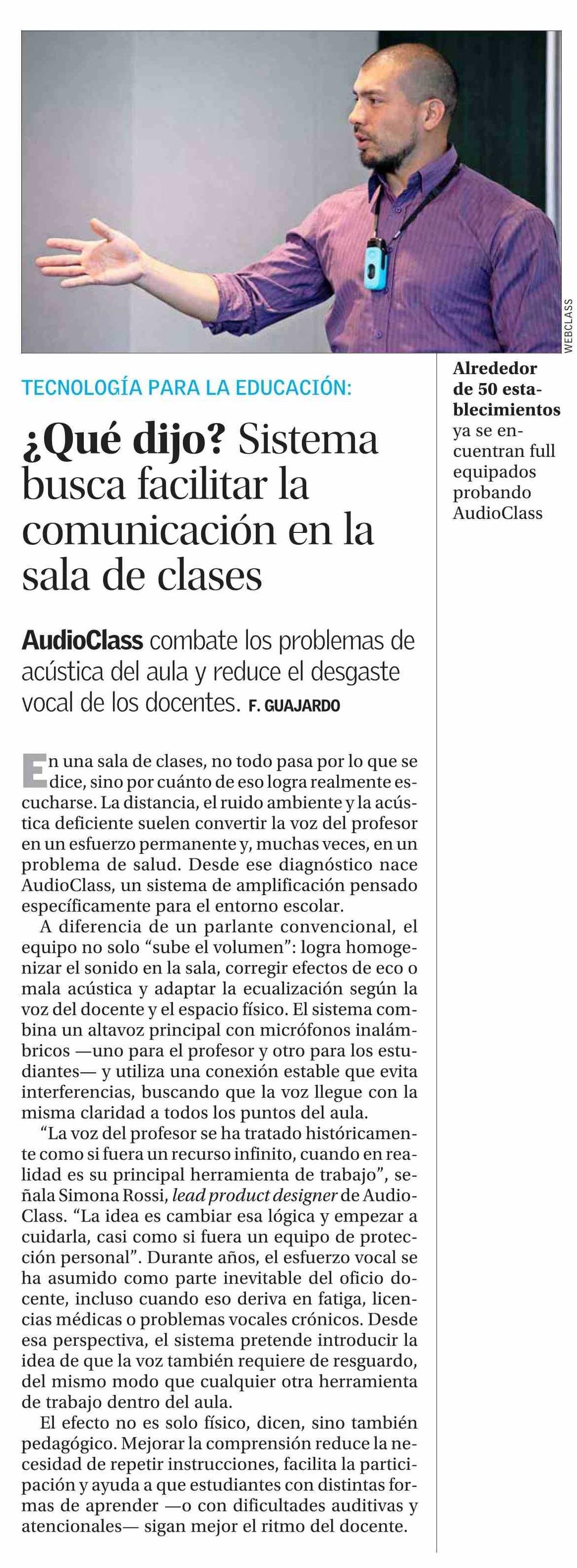 ¿Qué dijo? Sistema busca facilitar la comunicación en la sala de clases 12-02-2026 El Mercurio |