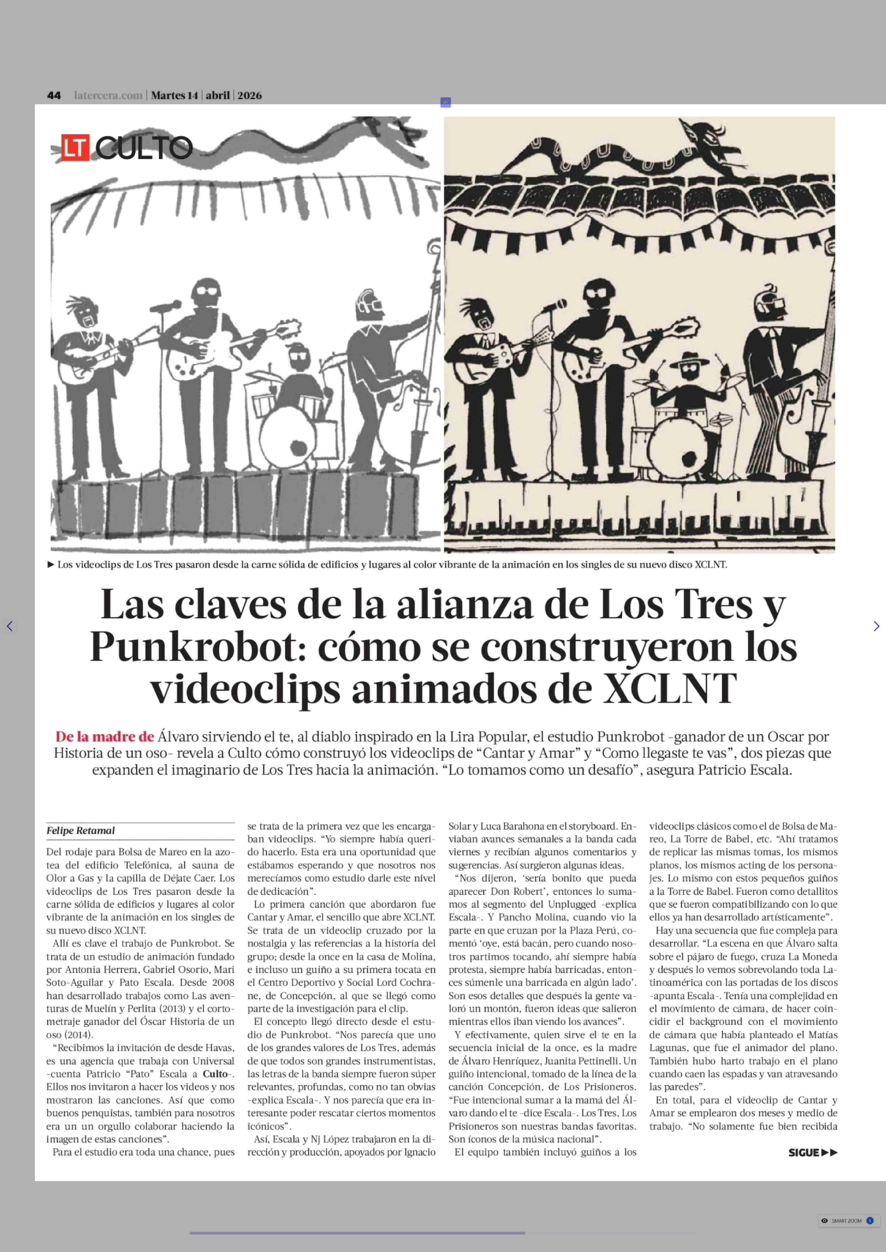 Las claves de la alianza de Los Tres y Punkrobot: cómo se construyeron los videoclips animados de XCLNT 14-04-2026 La Tercera |