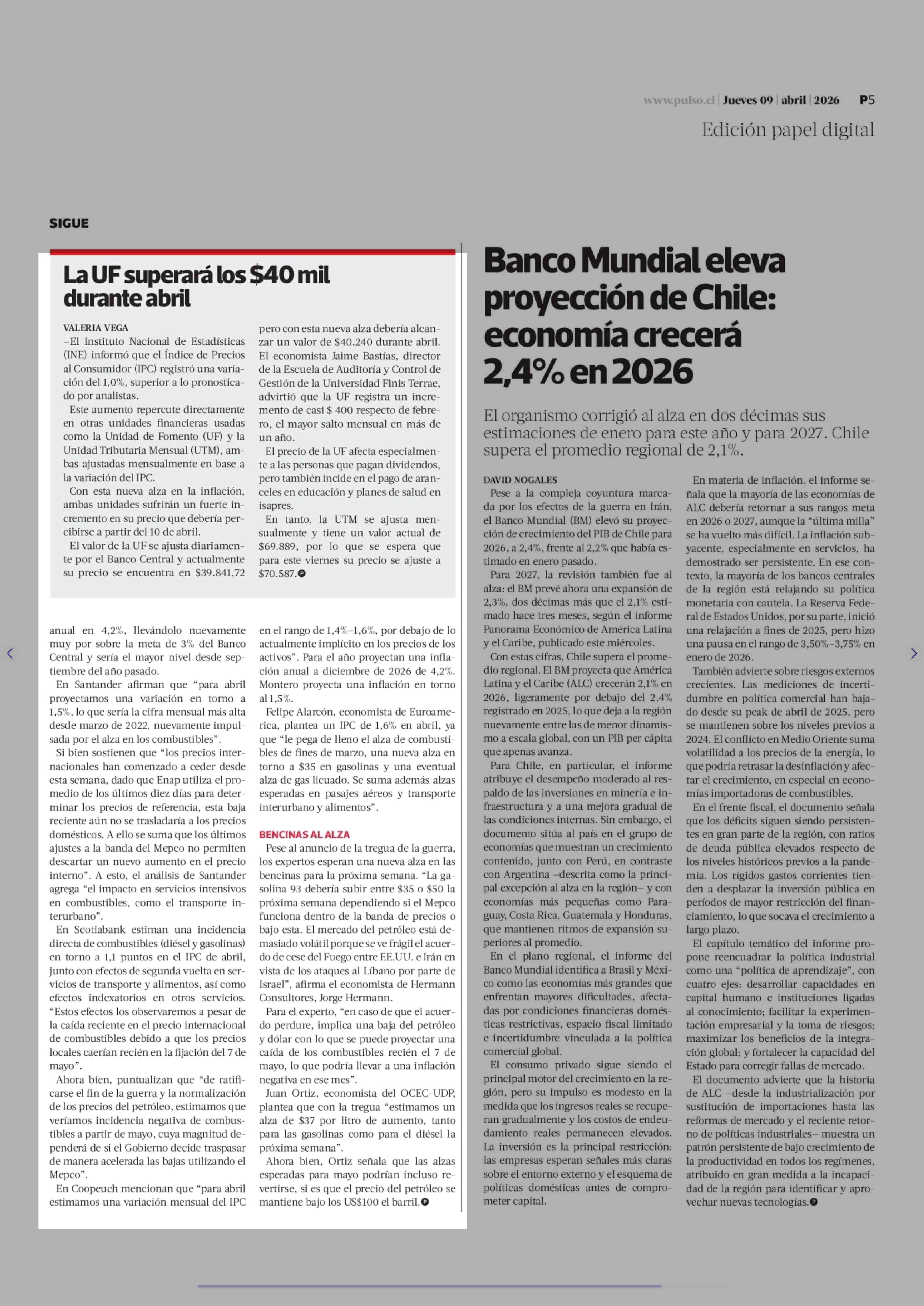 IPC de marzo sube 1% por impacto de las bencinas y expertos ven otra fuerte alza en abril llevando la inflación anual a superar el 4% 09-04-2026 La Tercera |