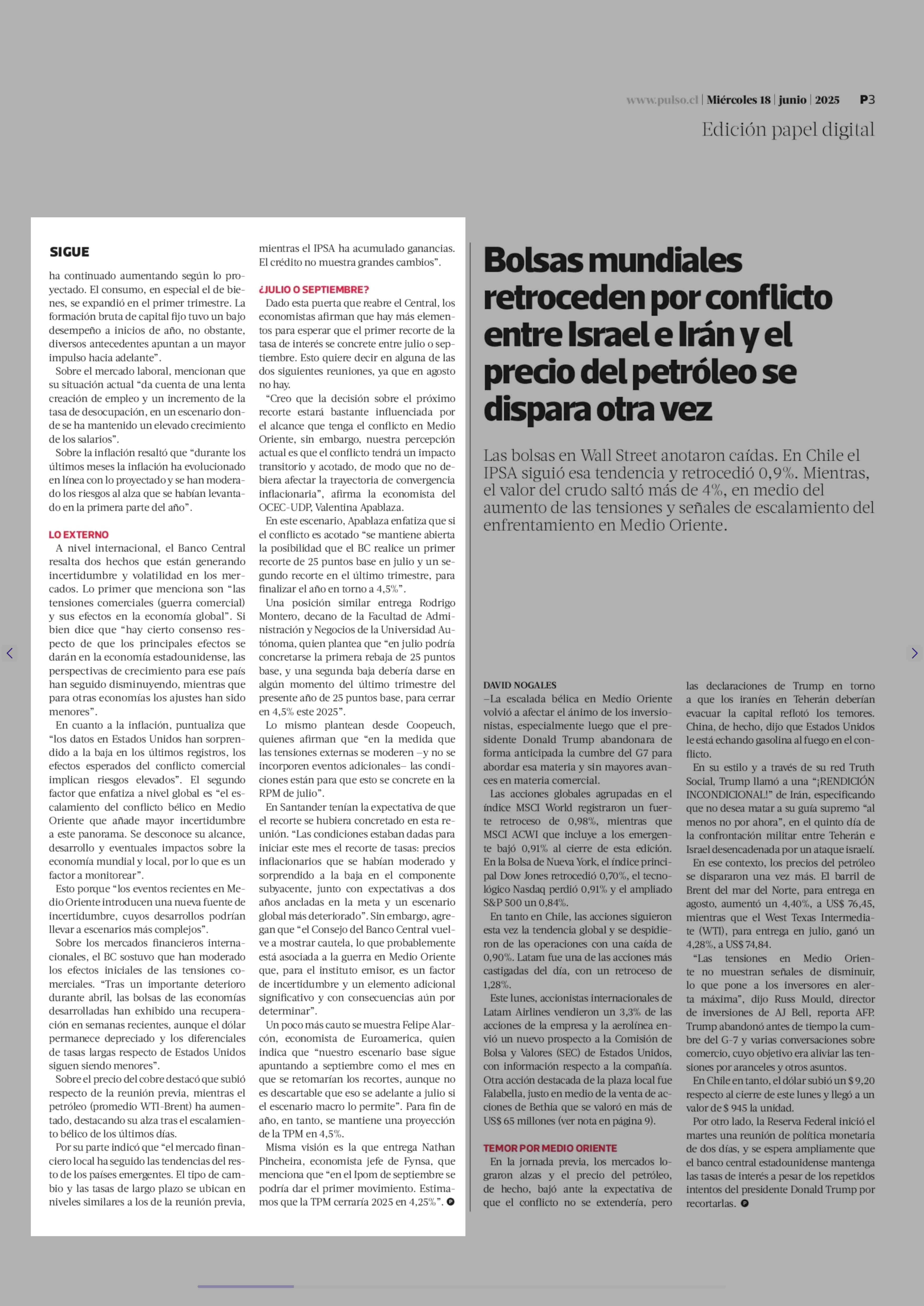 Banco Central abre la puerta a retomar las bajas de tasas y economistas anticipan que sería entre julio y septiembre 18-06-2025 La Tercera |