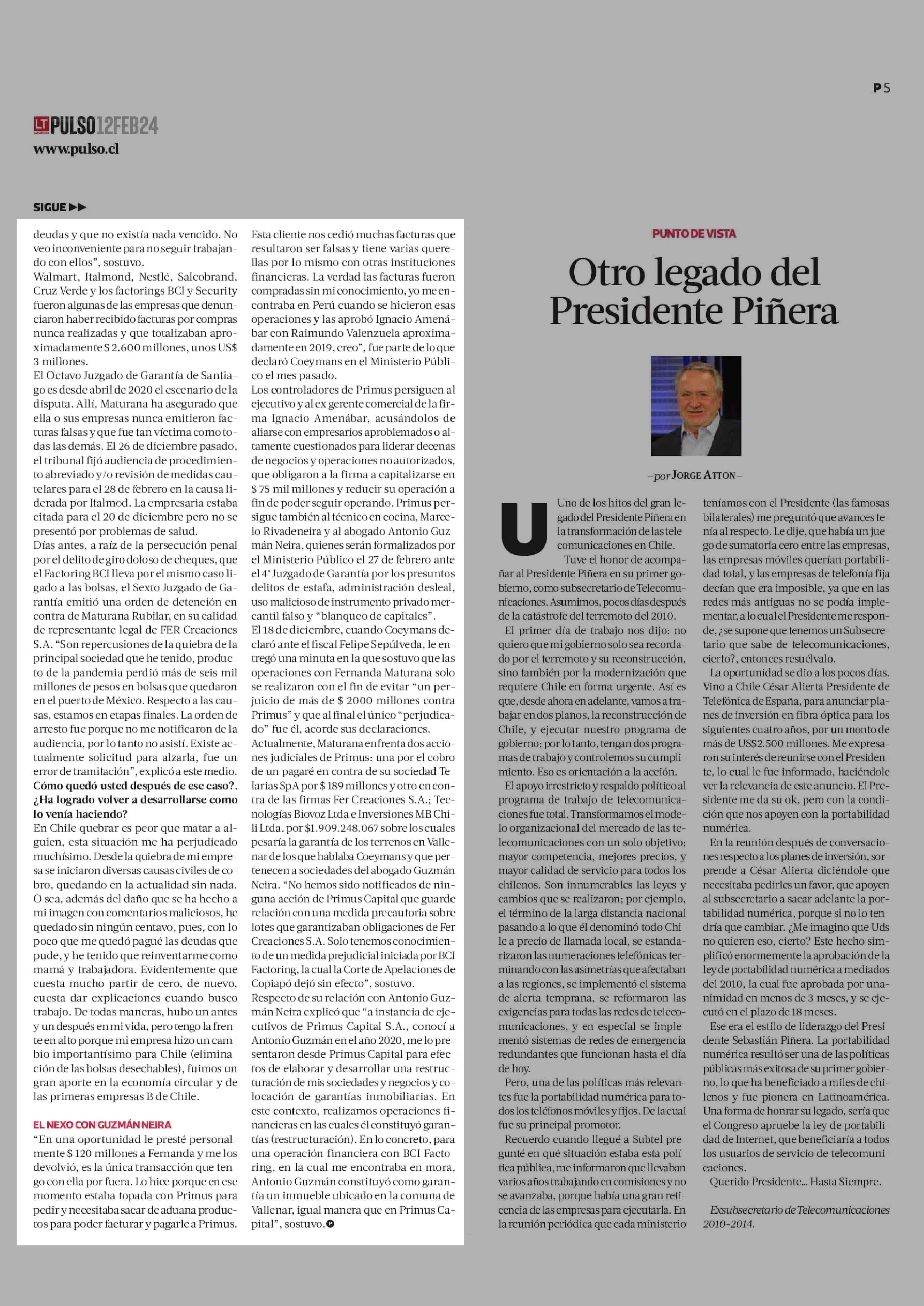 Fernanda Maturana habla de su rol en el caso Primus: “No he formado parte de ningún esquema” 12-02-2024 La Tercera |