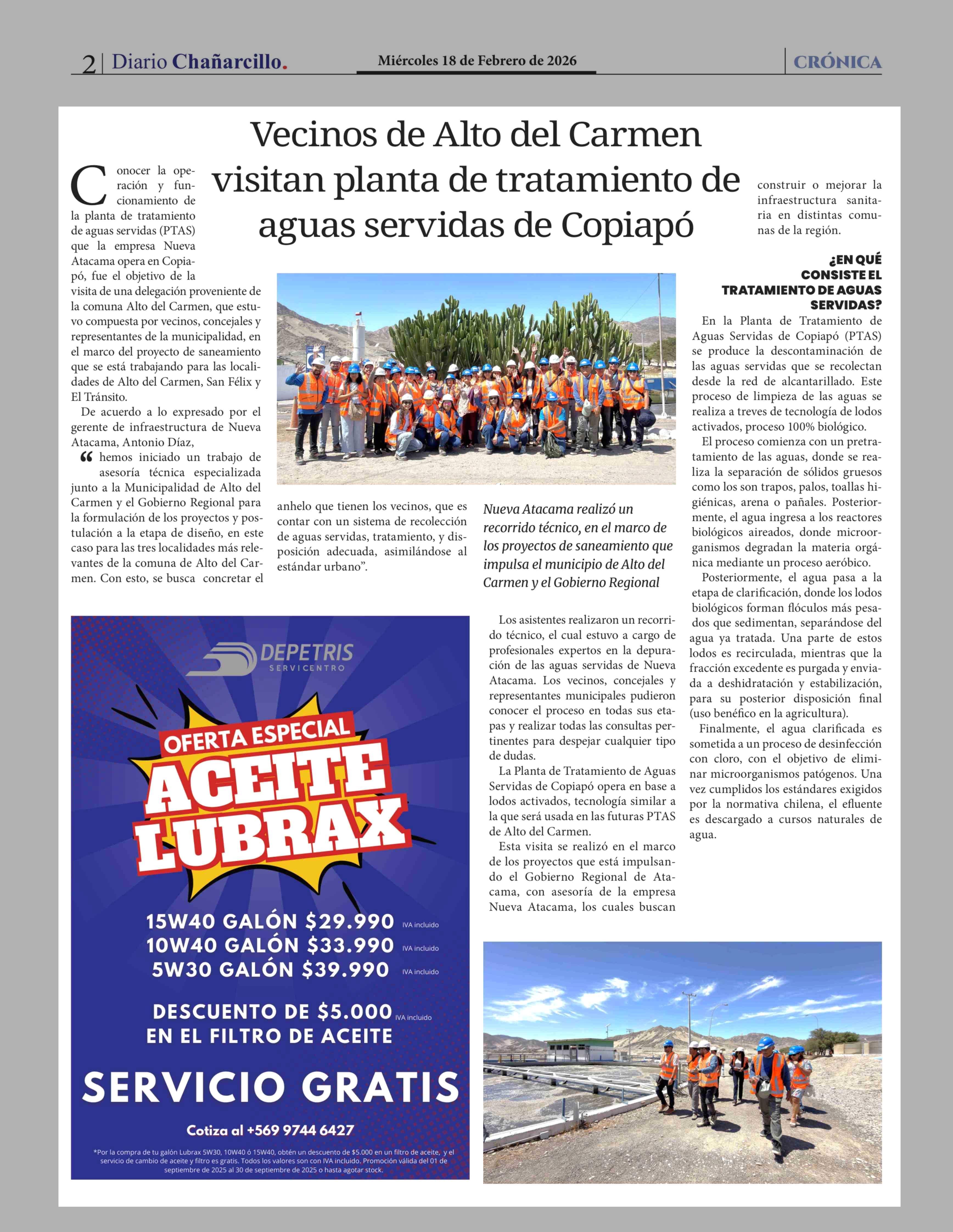 Vecinos de Alto del Carmen visitan planta de tratamiento de aguas servidas de Copiapó 18-02-2026 Diario Chañarcillo |