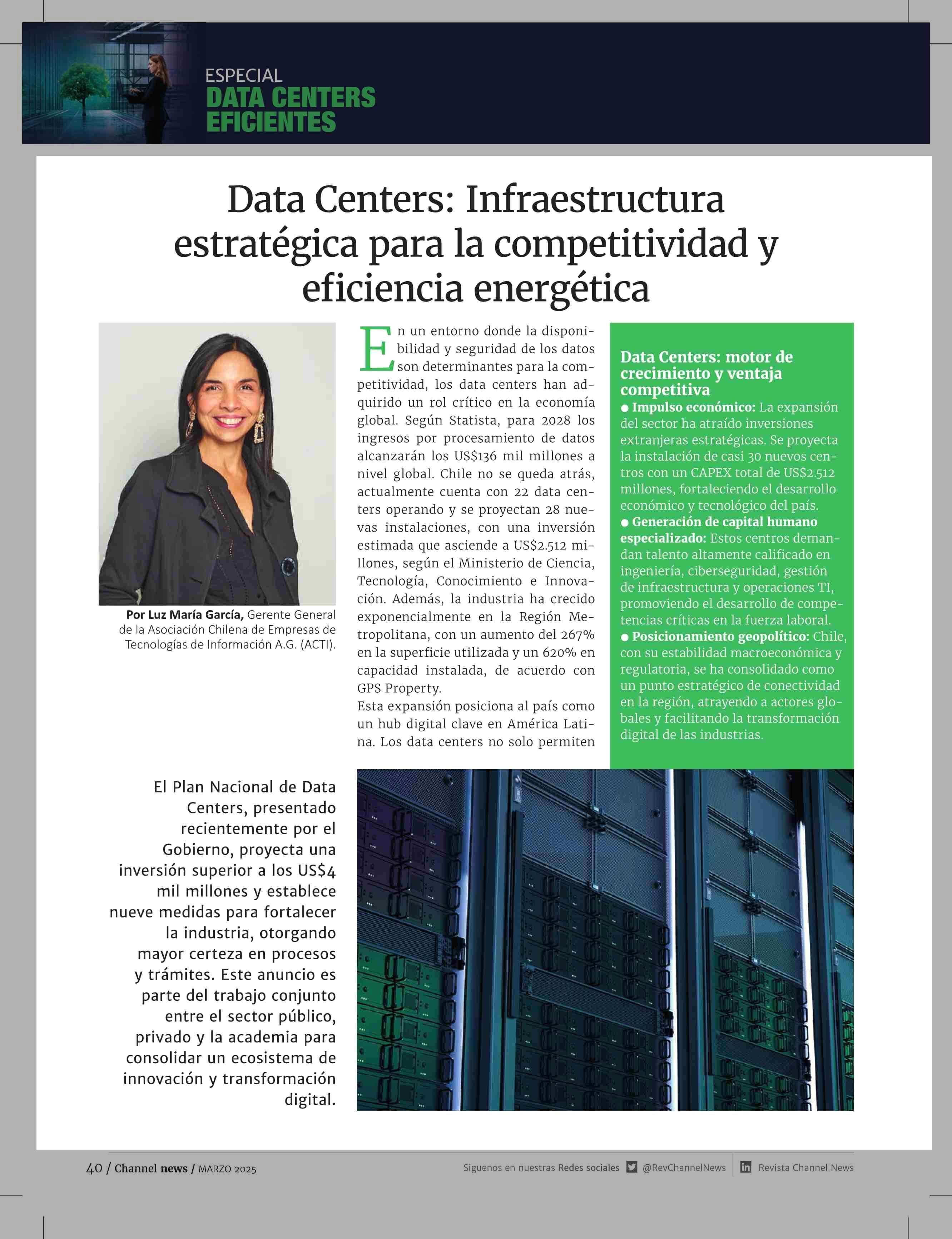 Data Centers: Infraestructura estratégica para la competitividad y eficiencia energética 24-03-2025 Revista Channel News |