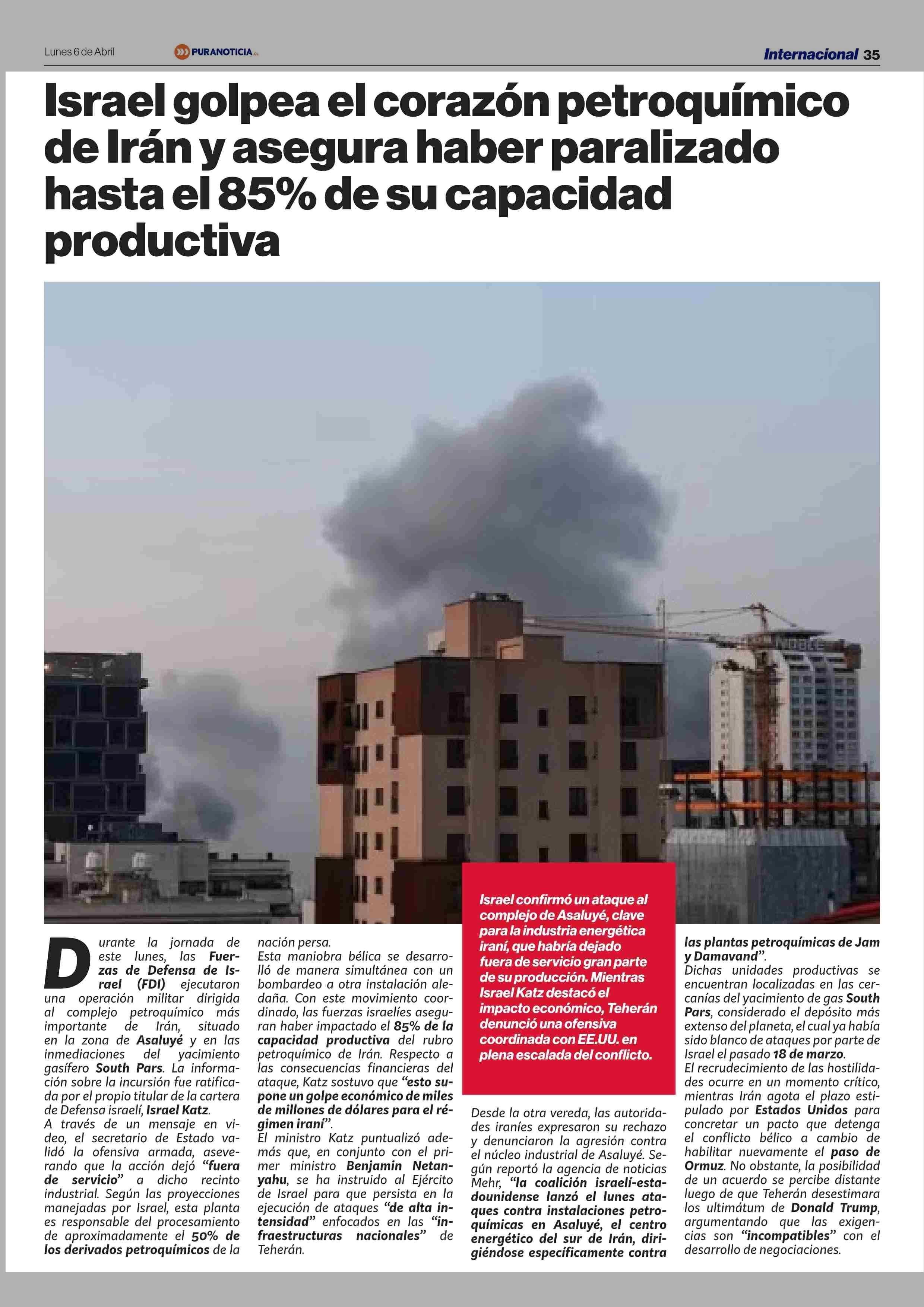 Título: Israel golpea el corazón petroquímico de Irán y asegura haber paralizado hasta el 85% de su capacidad productiva