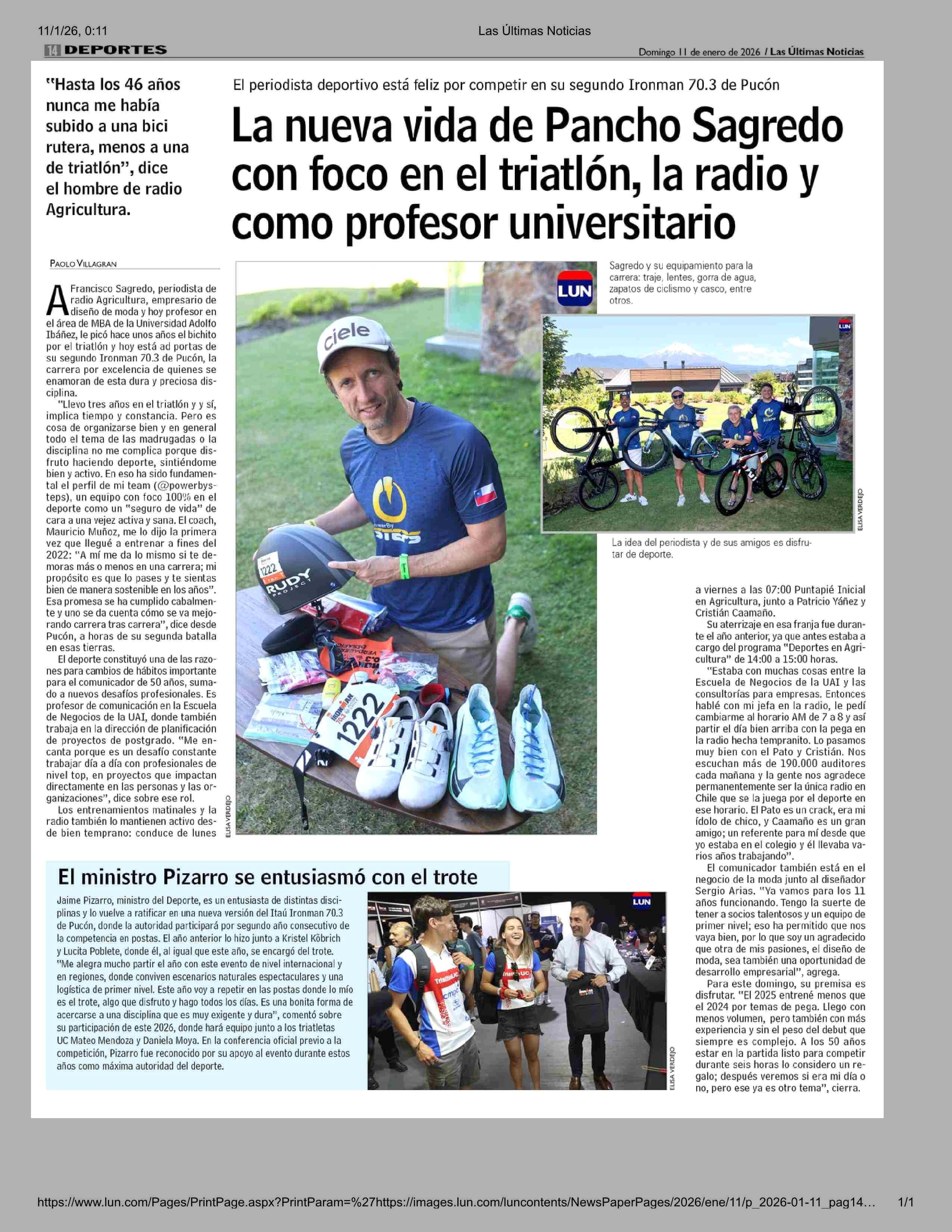 Título: La nueva vida de Pancho Sagredo con foco en el triatlón, la radio y como profesor universitario