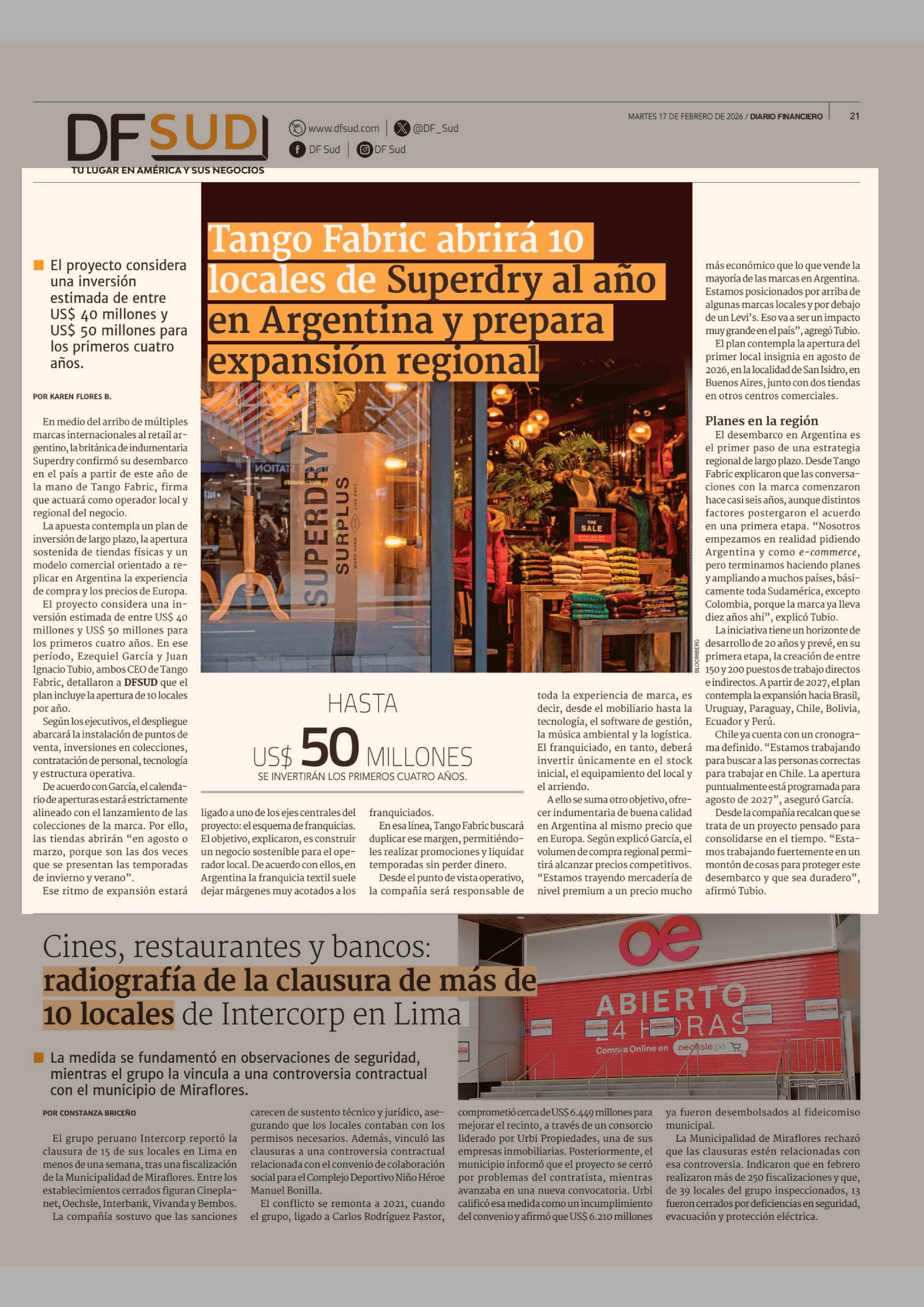 Título: Tango Fabric abrirá 10 locales de Superdry al año en Argentina y prepara expansión regional