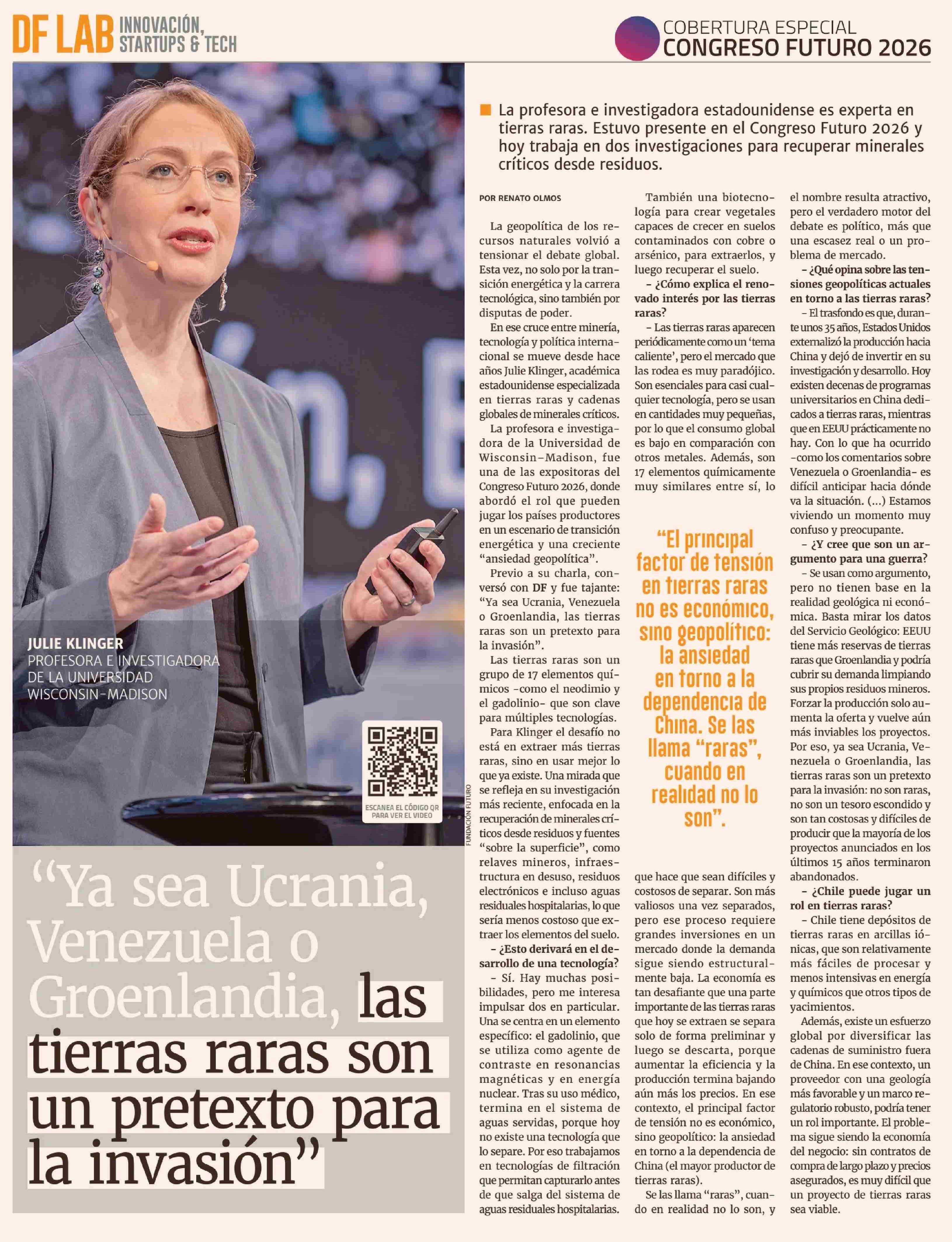 "Ya sea Ucrania, Venezuela o Groenlandia, las tierras raras son un pretexto para la invasión" 19-01-2026 Diario Financiero |