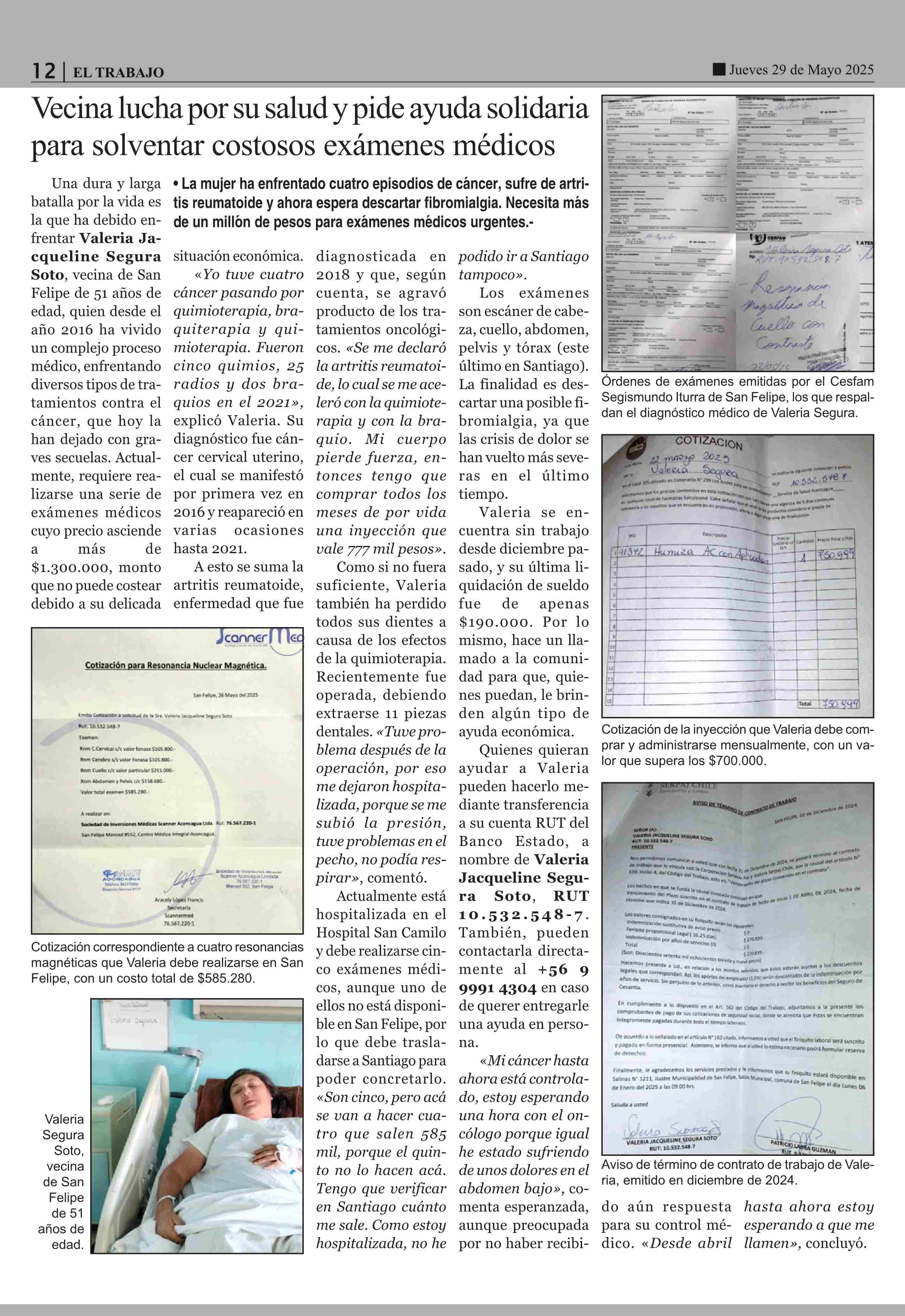 Vecina lucha por su salud y pide ayuda solidaria para solventar costosos exámenes médicos 29-05-2025 El Trabajo |