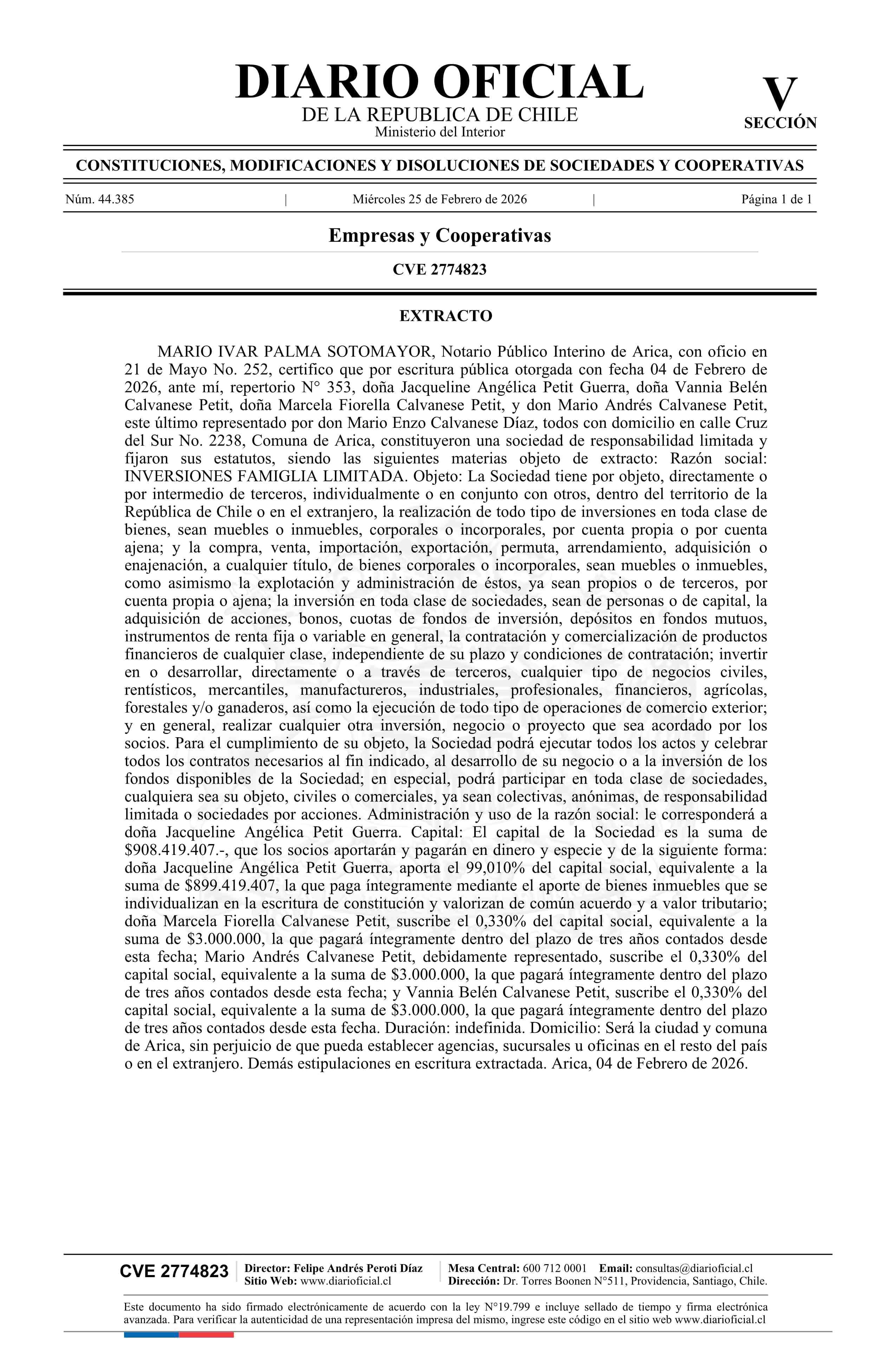 Título: INVERSIONES FAMIGLIA LIMITADA