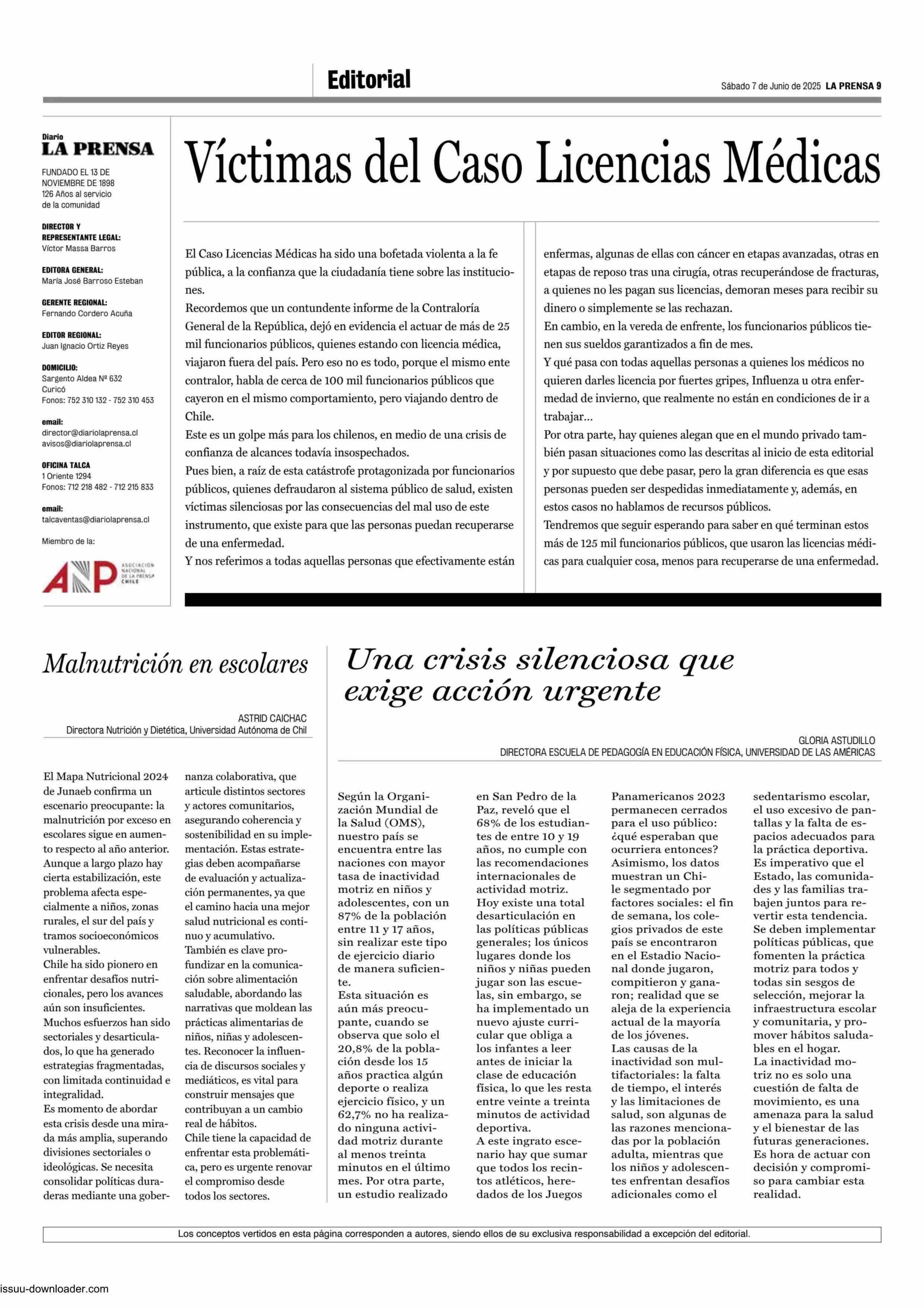 COLUMNAS DE OPINIÓN: Malnutrición en escolares 07-06-2025 La Prensa de Curicó |