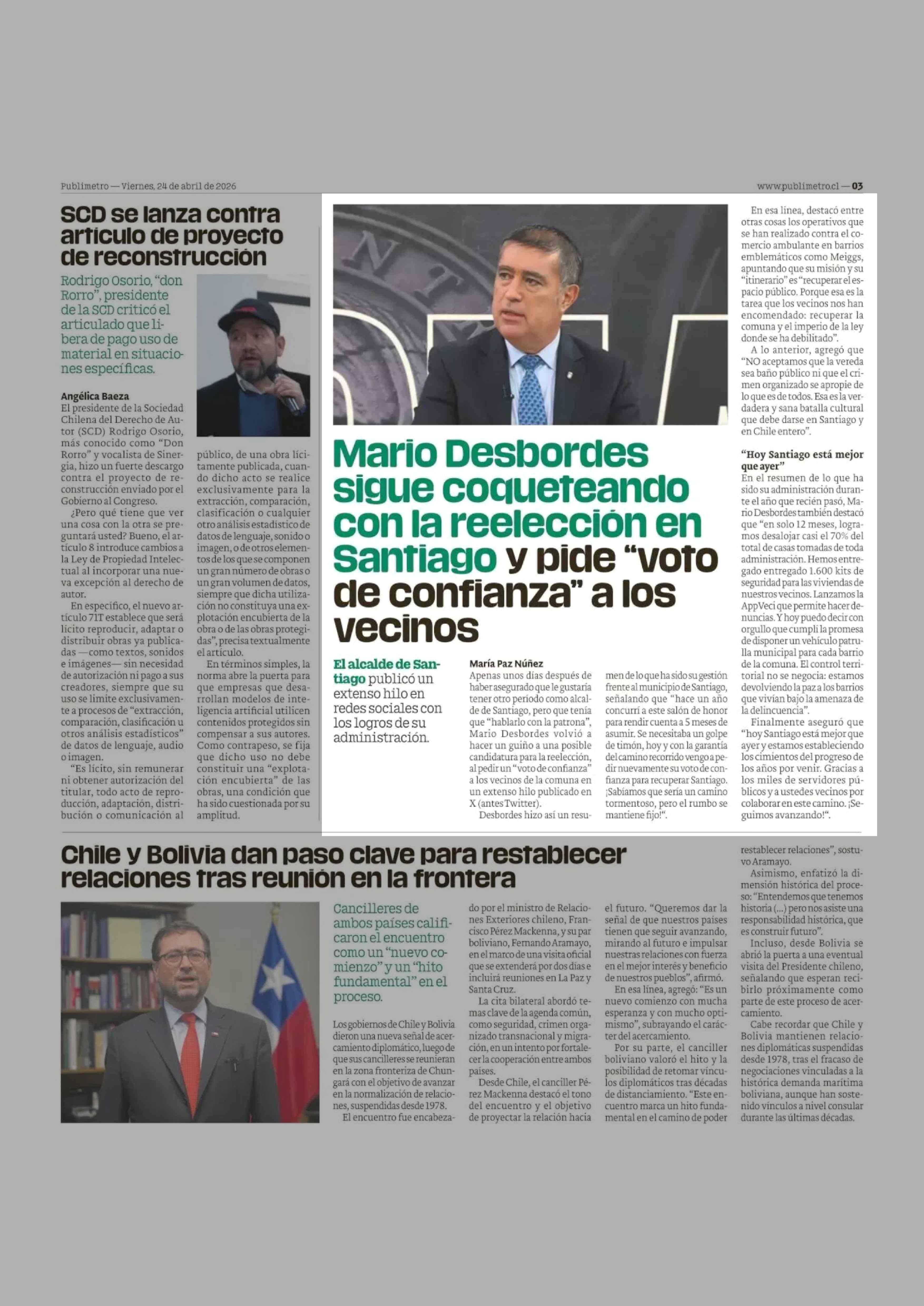 | Fecha: | 24-04-2026 | Sector: | Noticia general | Región: | Región Metropolitana de Santiago |