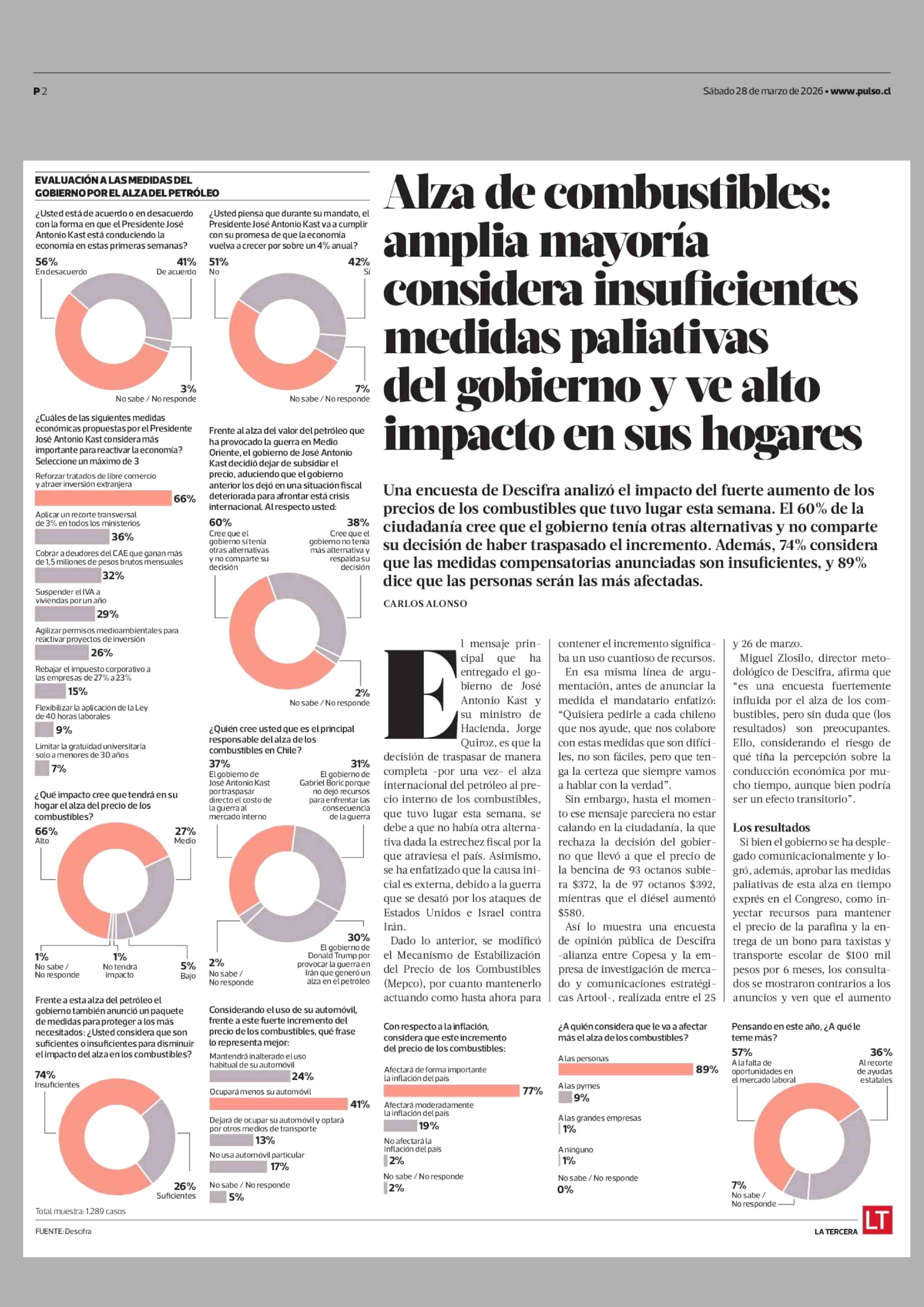 Título: Alza de combustibles: amplia mayoría considera insuficientes medidas paliativas del gobierno y ve alto impacto en sus hogares
