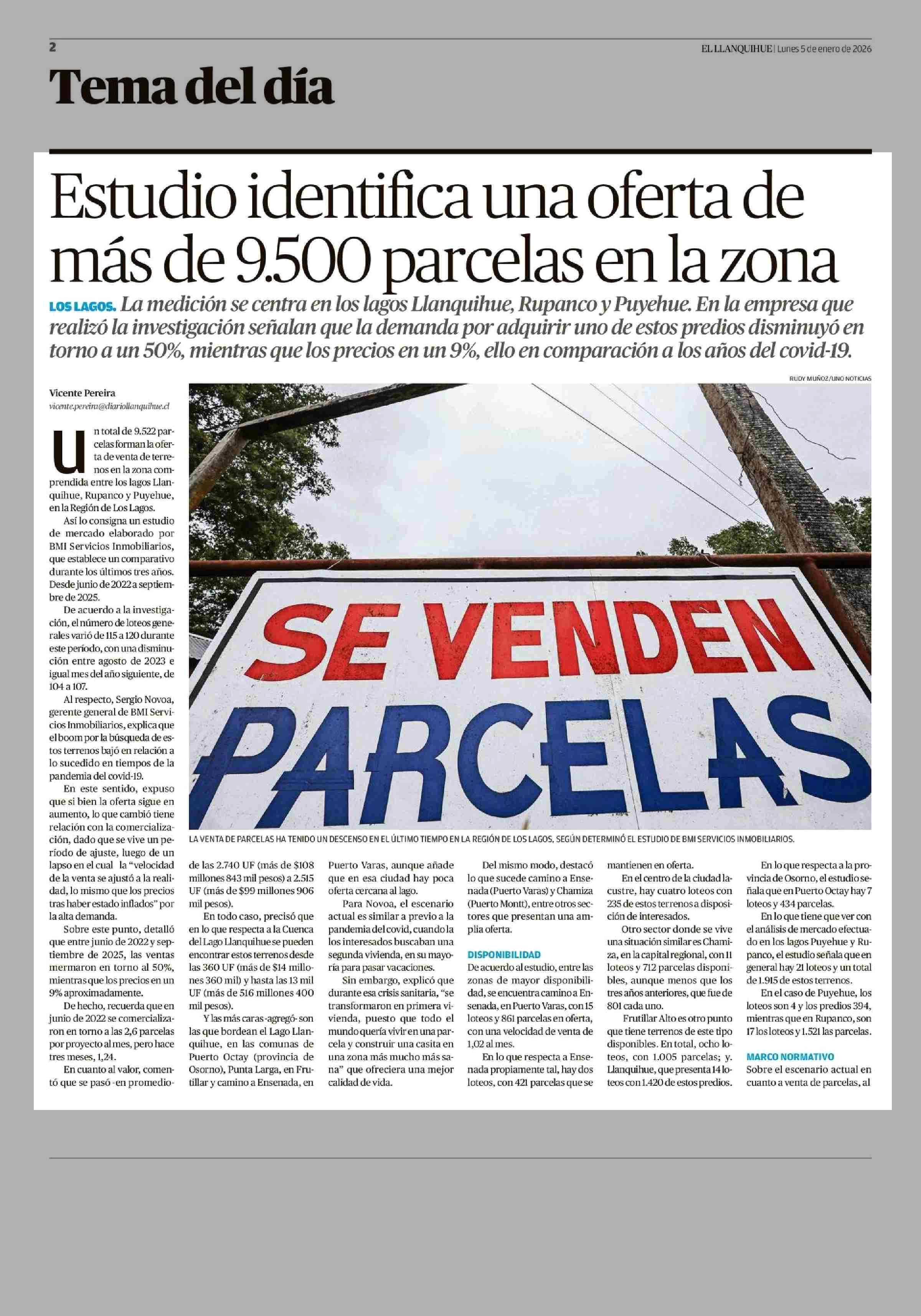 Estudio identifica una oferta de más de 9.500 parcelas en la zona 05-01-2026 El Llanquihue |