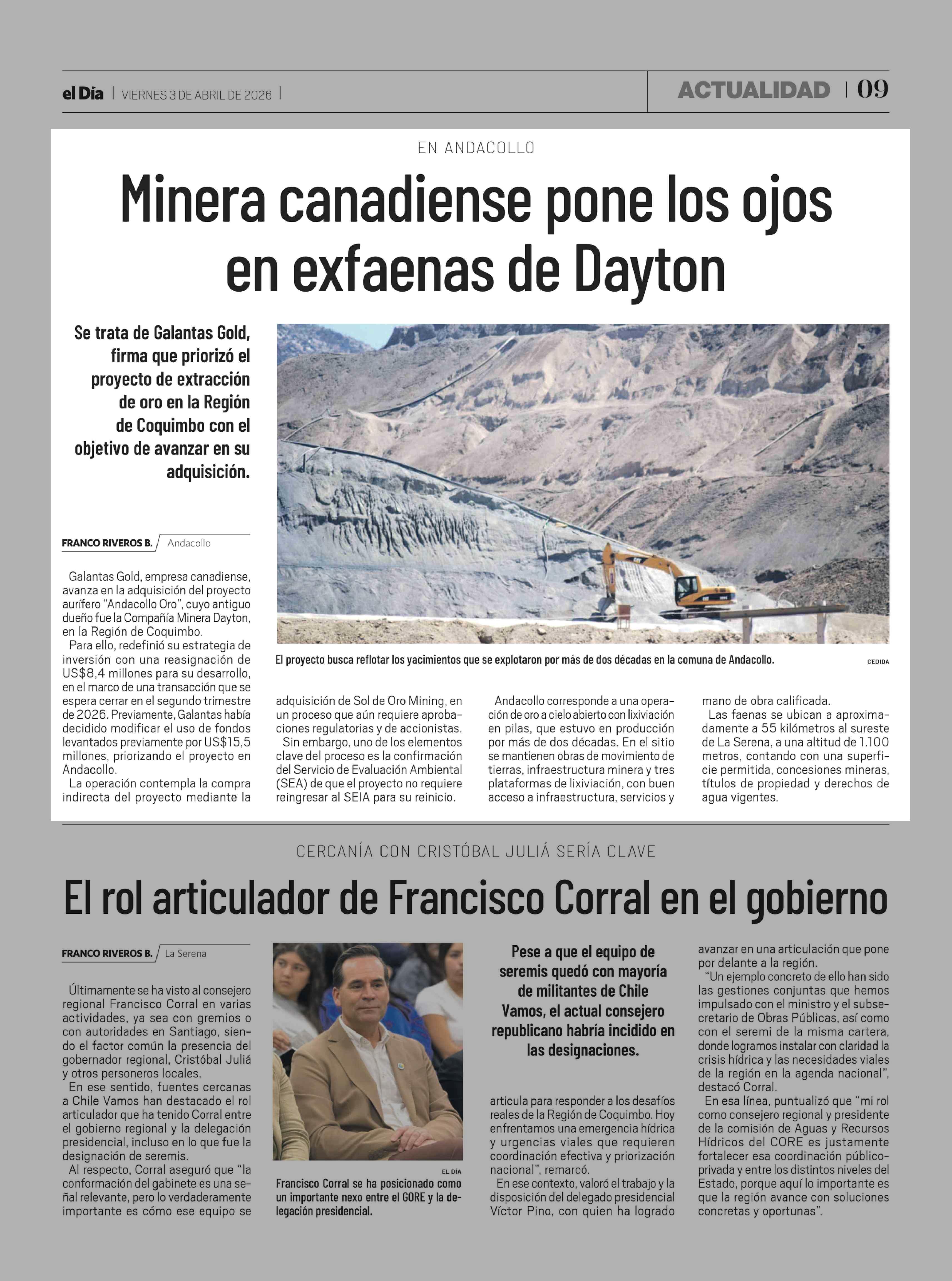 Minera canadiense pone los ojos en exfaenas de Dayton 03-04-2026 El Día |