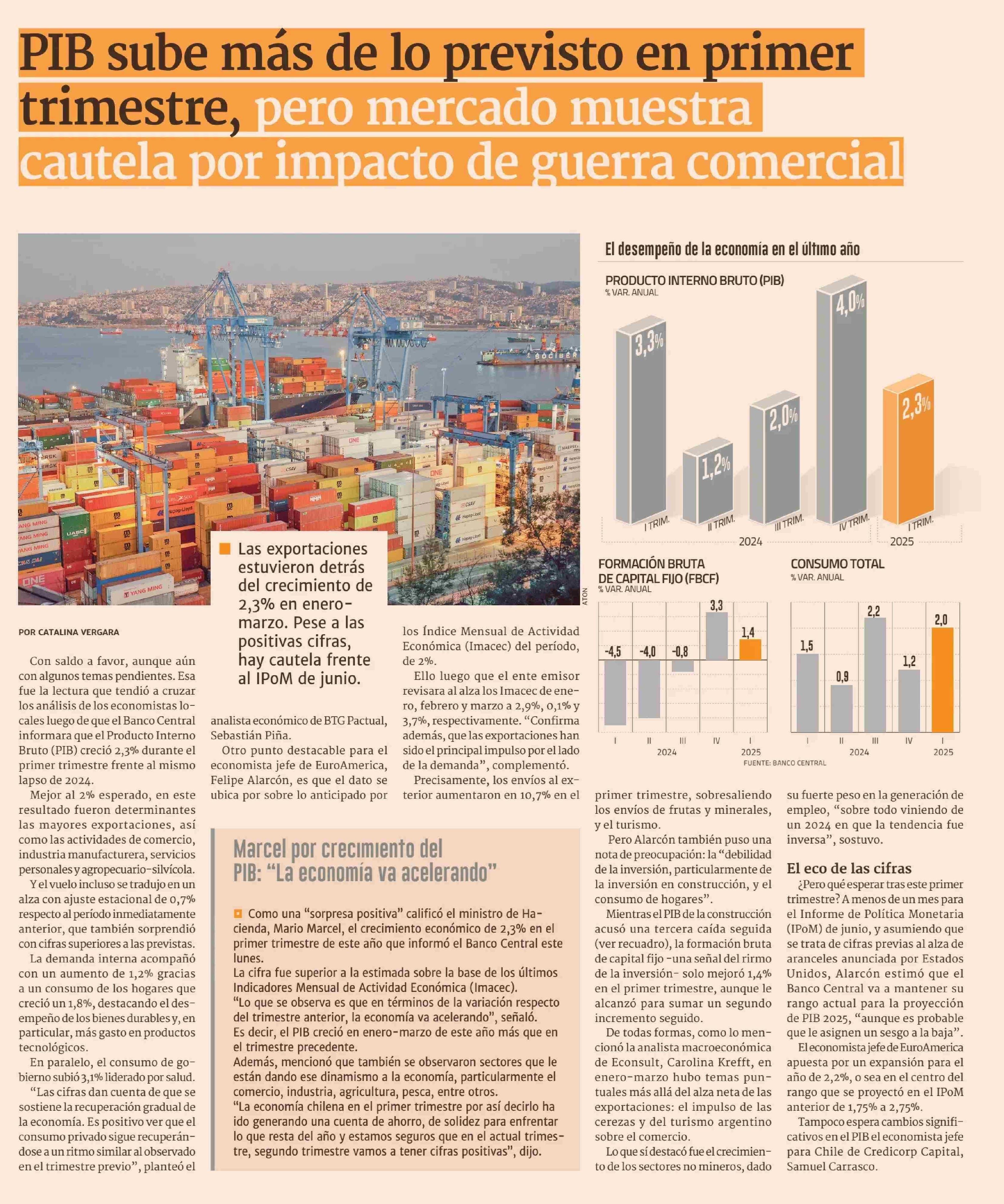 Título: PIB sube más de lo previsto en primer trimestre, pero mercado muestra cautela por impacto de guerra comercial