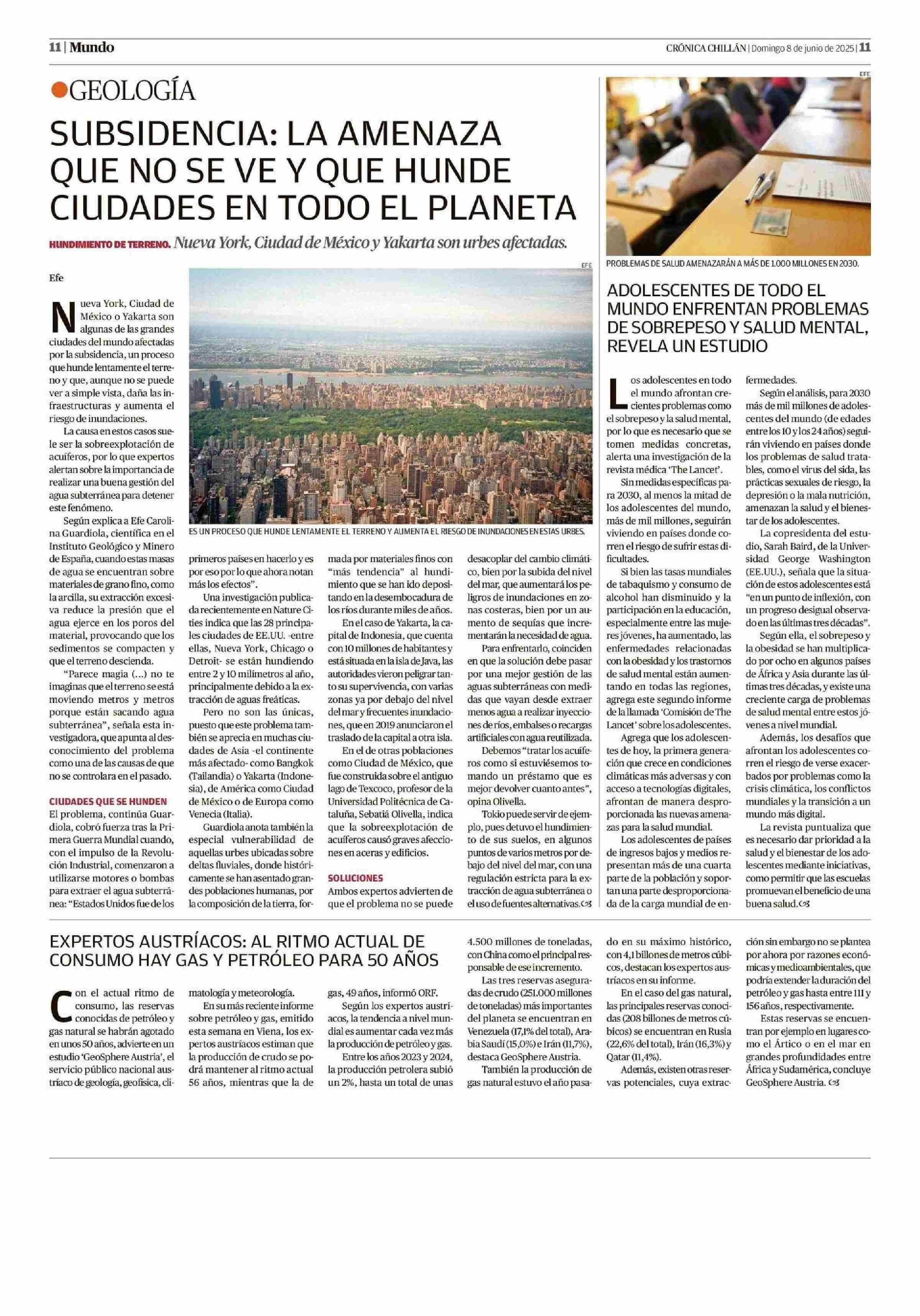 SUBSIDENCIA: LA AMENAZA QUE NO SE VE Y QUE HUNDE CIUDADES EN TODO EL PLANETA 08-06-2025 Crónica de Chillán |