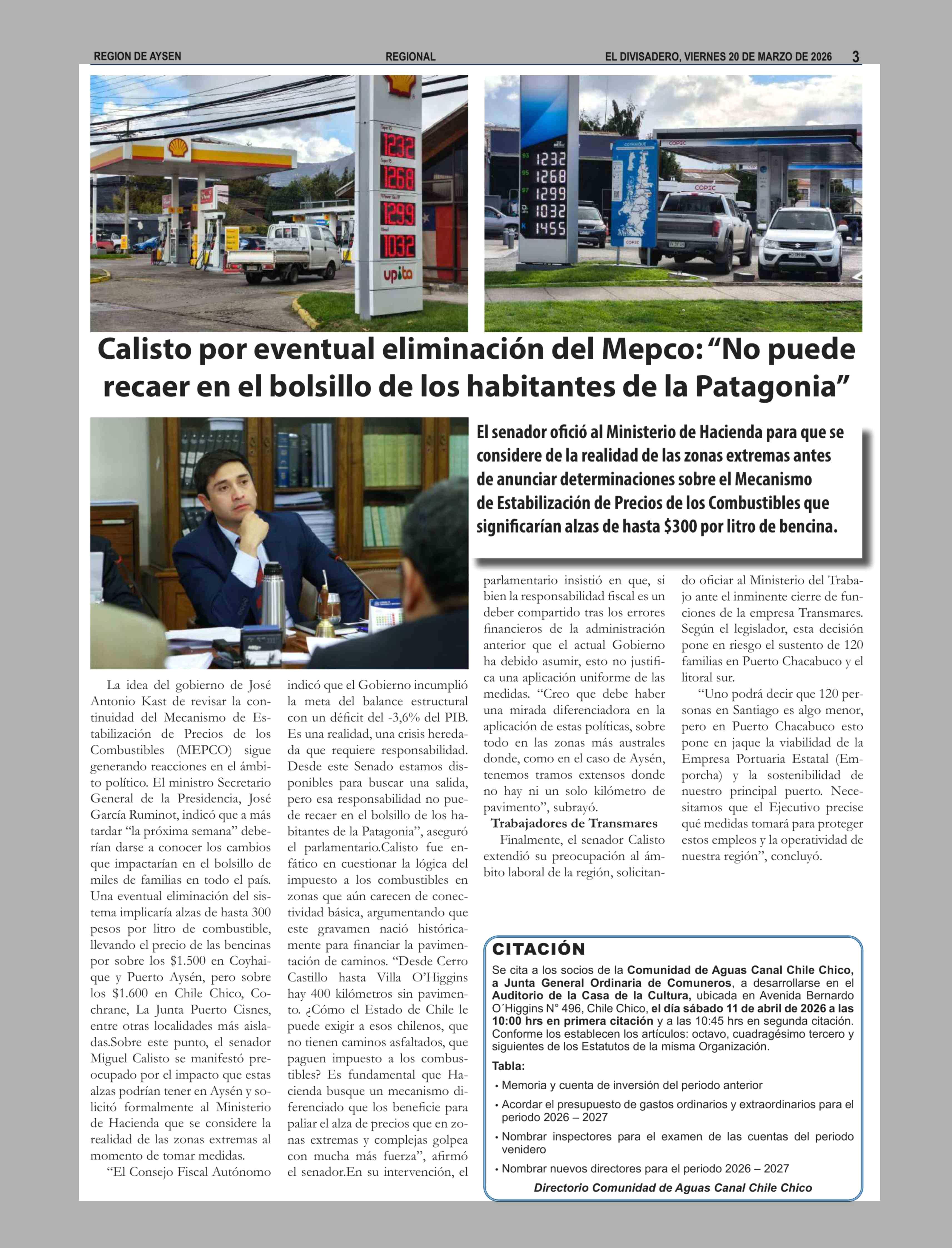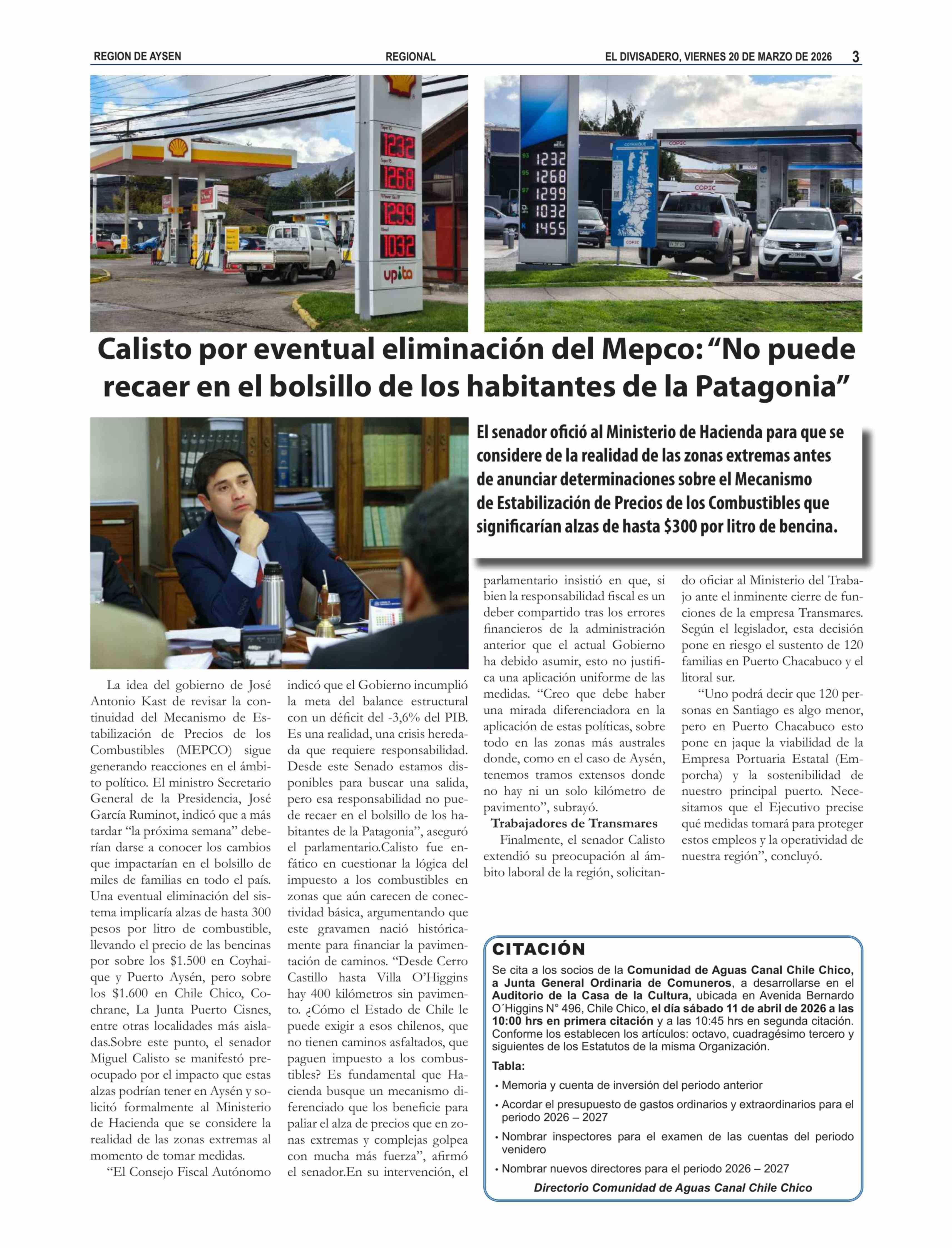 Calisto por eventual eliminación del Mepco: "No puede recaer en el bolsillo de los habitantes de la Patagonia" 20-03-2026 El Divisadero |