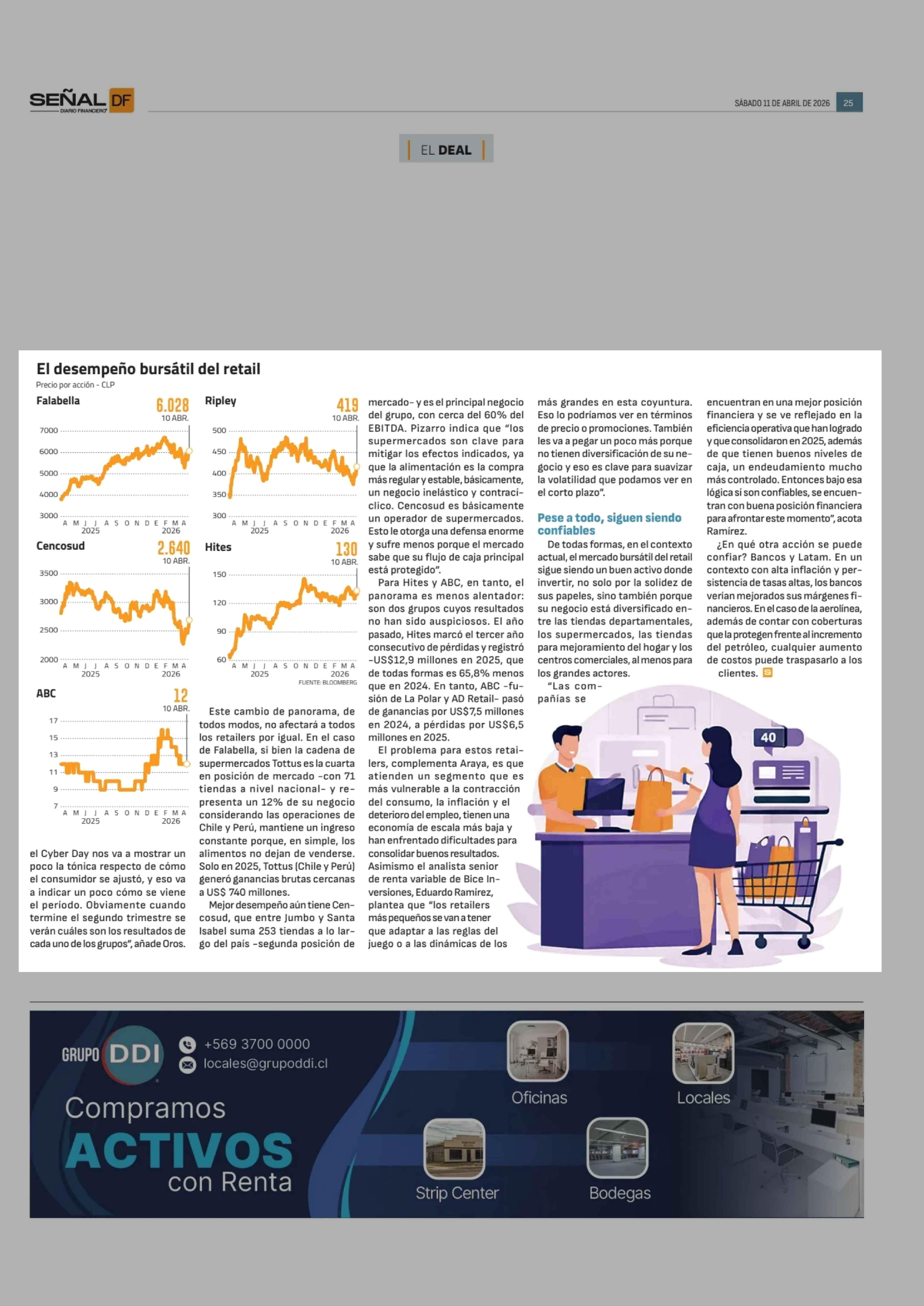 El retail cae por la guerra, pero sigue siendo atractivo 11-04-2026 Diario Financiero |
