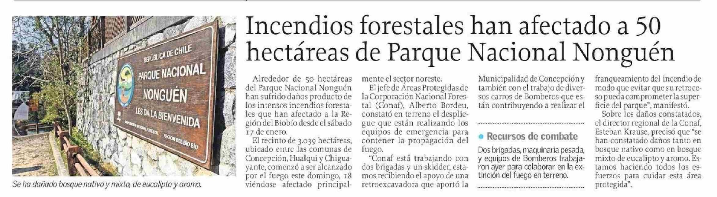 Título: Incendios forestales han afectado a 50 hectáreas de Parque Nacional Nonguén