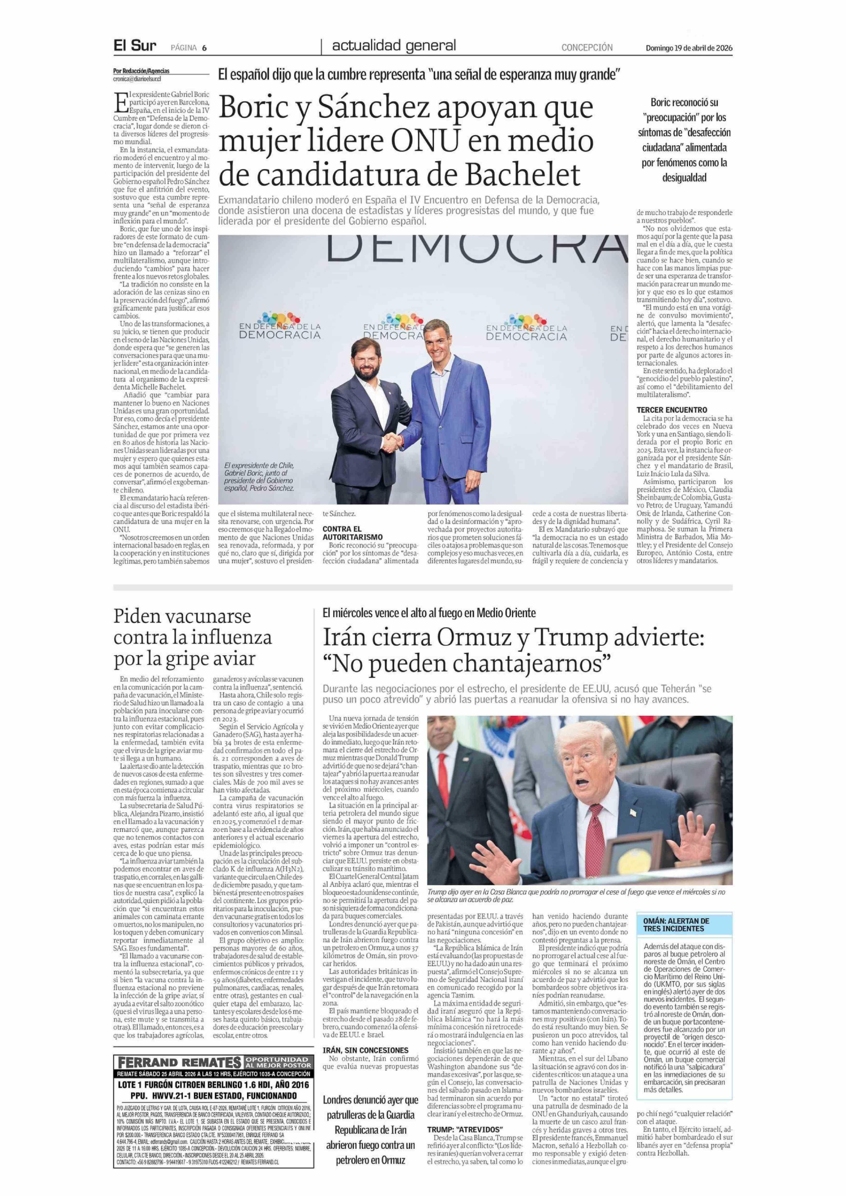 Título: Boric y Sánchez apoyan que mujer lidere ONU en medio de candidatura de Bachelet