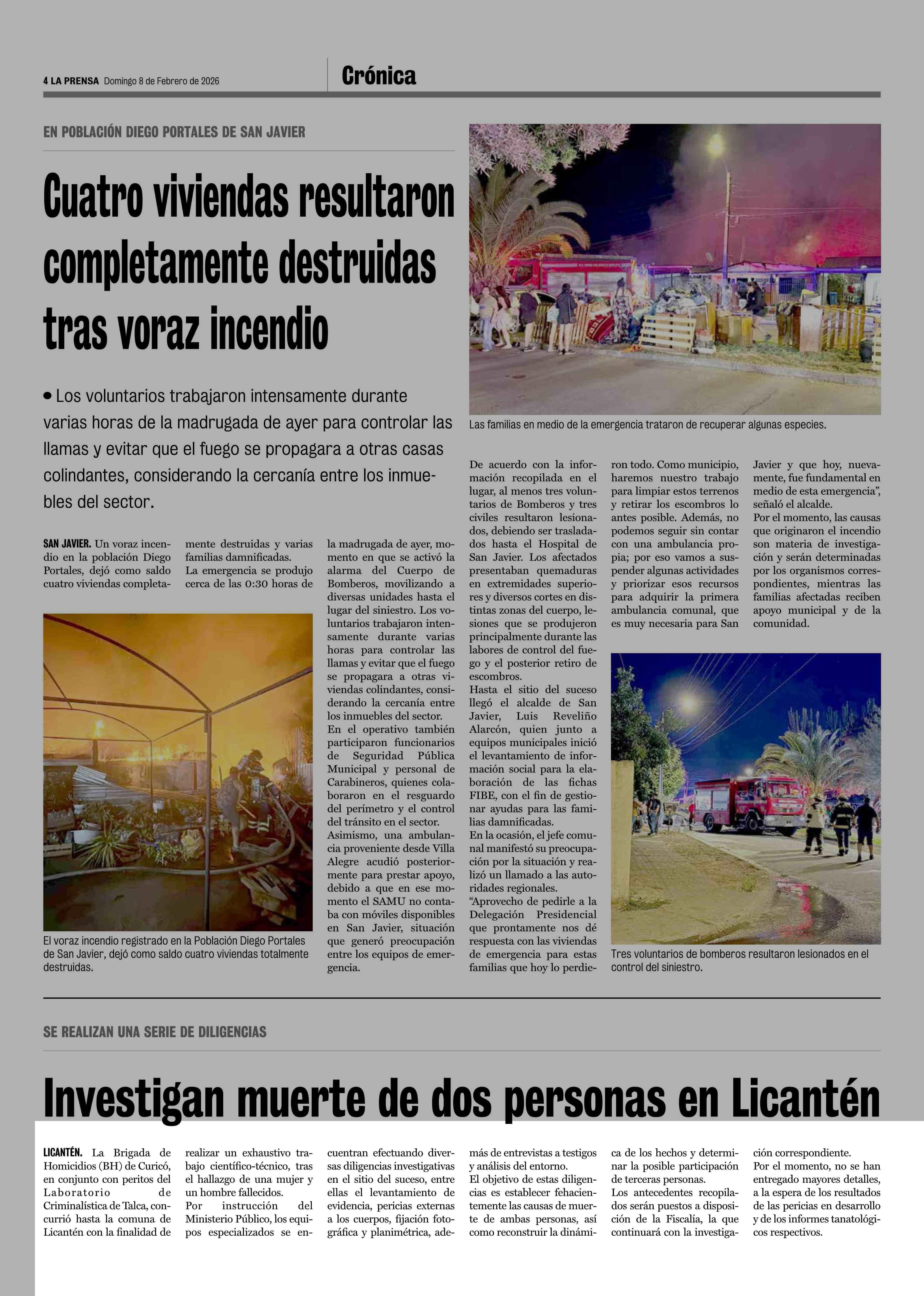 Investigan muerte de dos personas en Licantén 08-02-2026 La Prensa de Curicó |