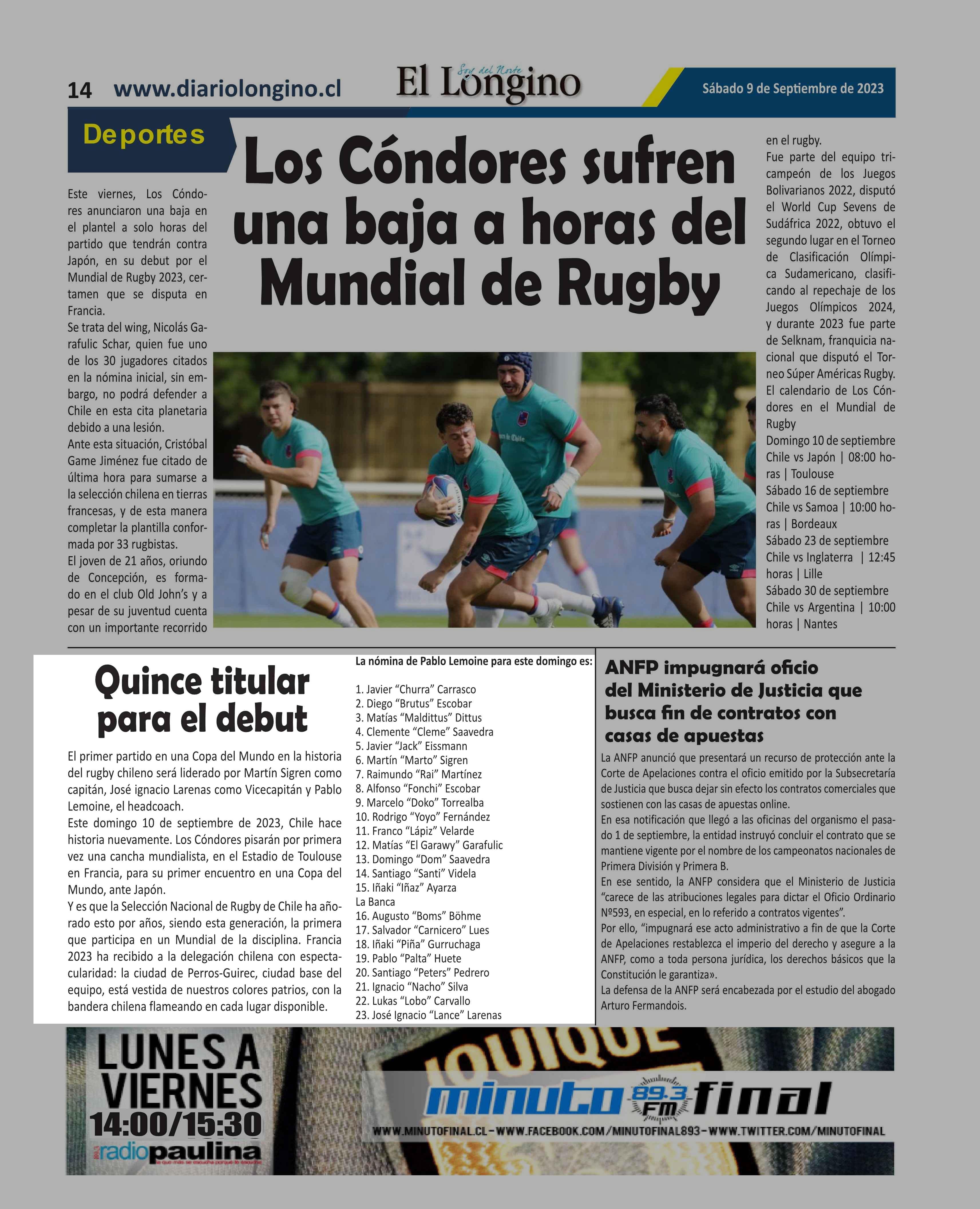 | Fecha: | 09-09-2023 | Sector: | Noticia general | Región: | Región de Tarapacá |