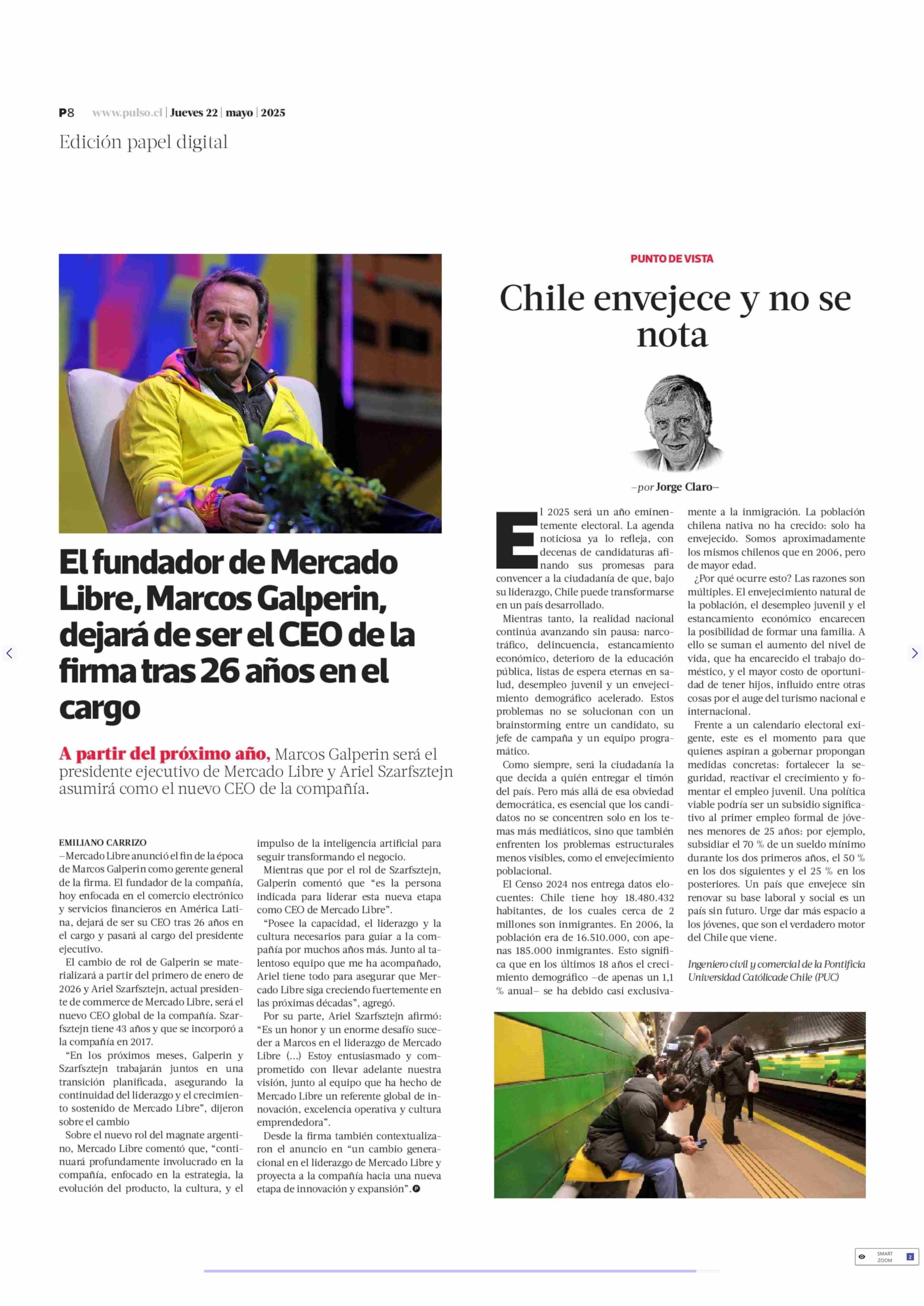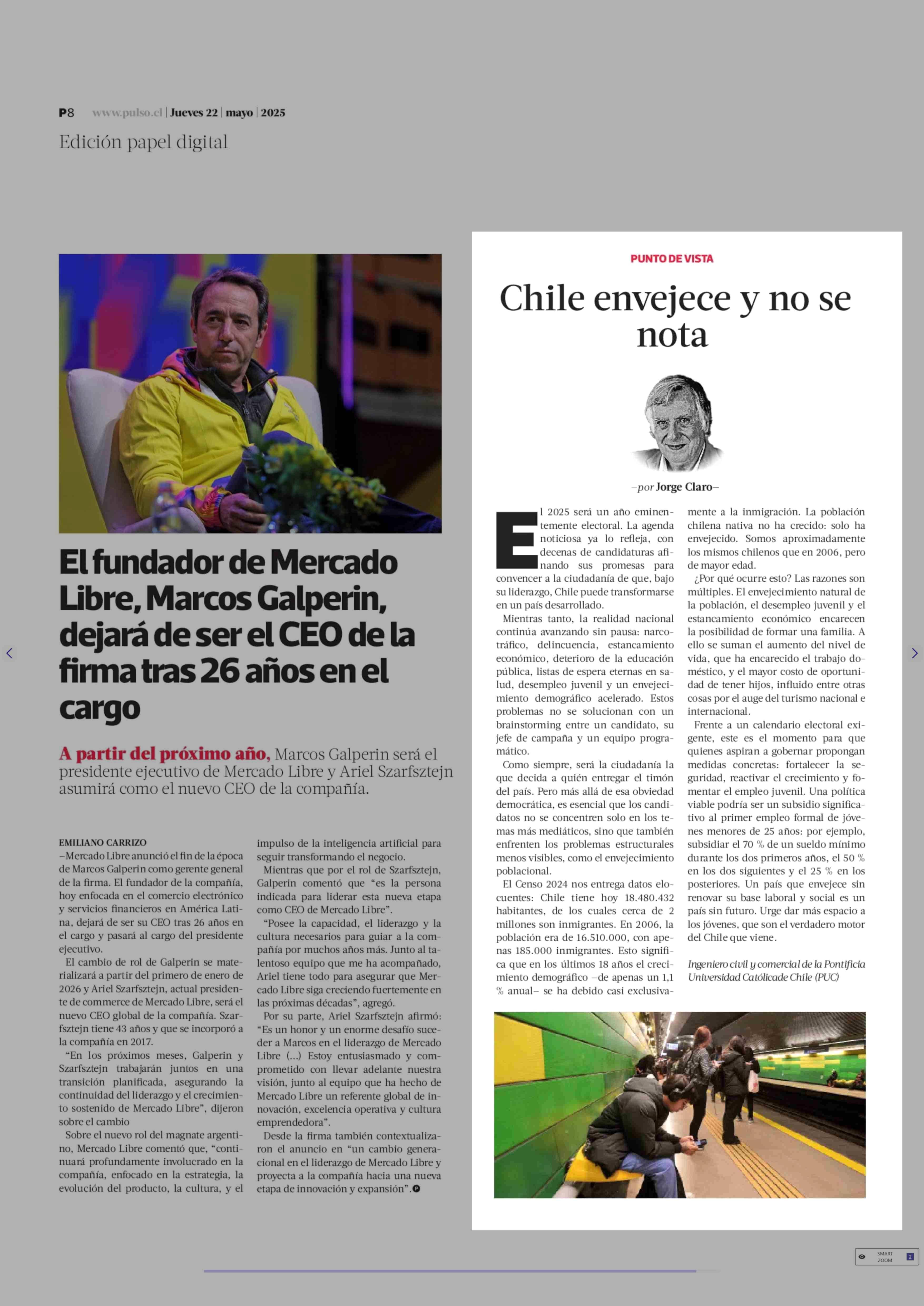 Chile envejece y no se nota 22-05-2025 La Tercera |
