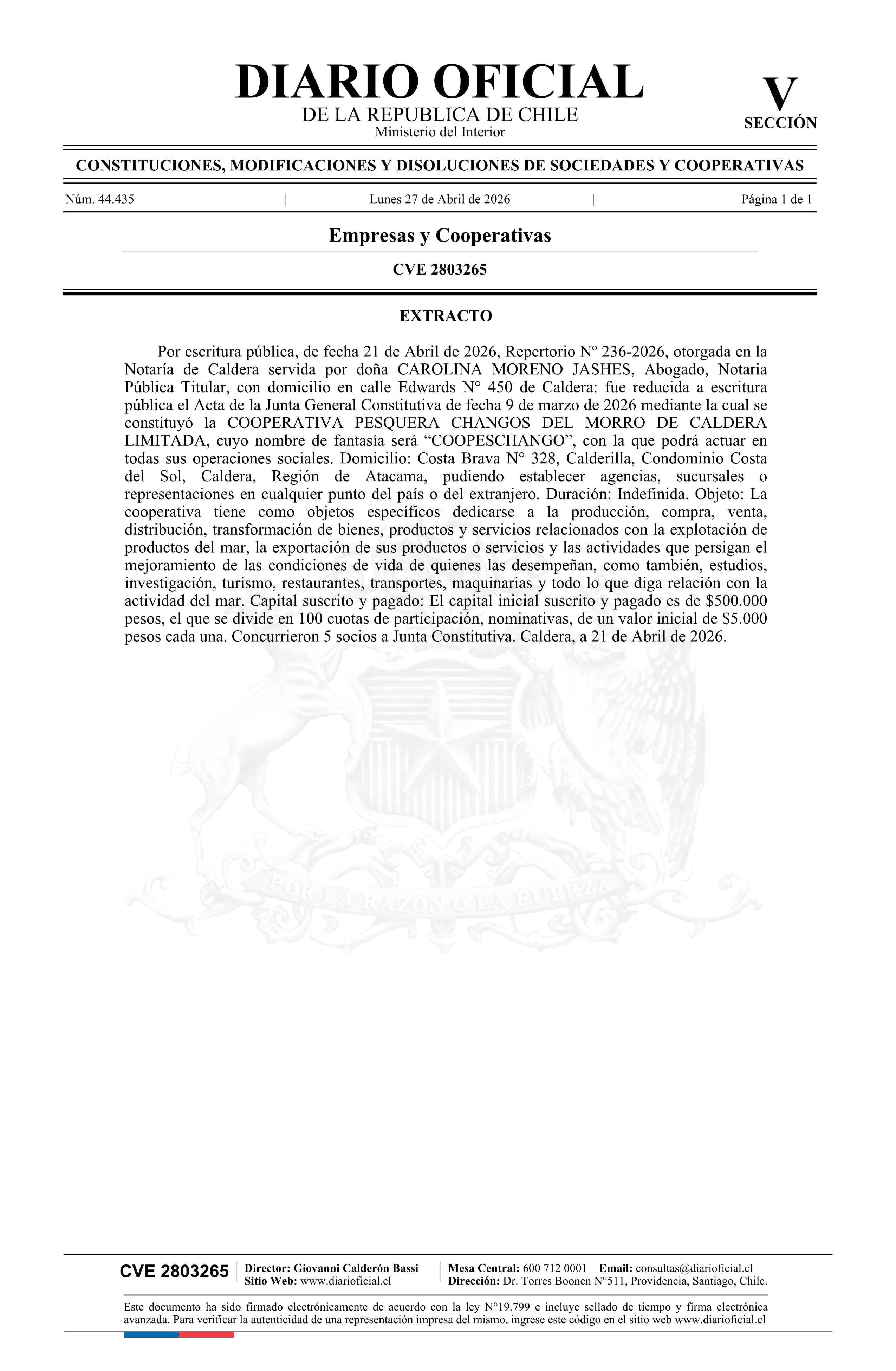 Título: COOPERATIVA PESQUERA CHANGOS DEL MORRO DE CALDERA LIMITADA