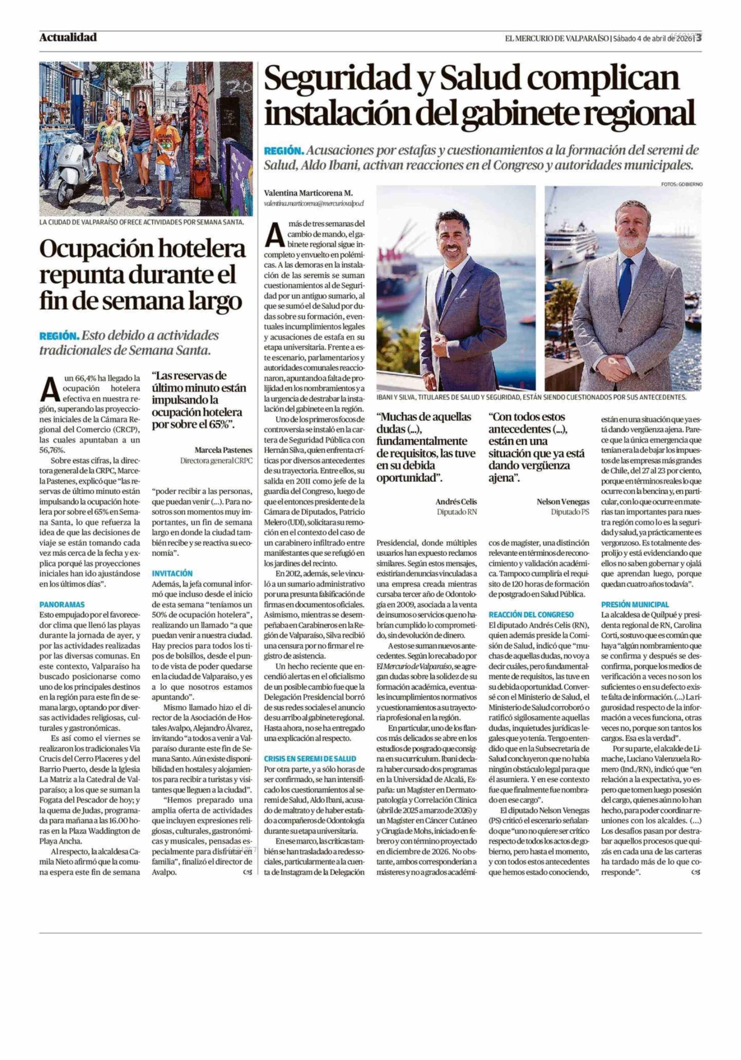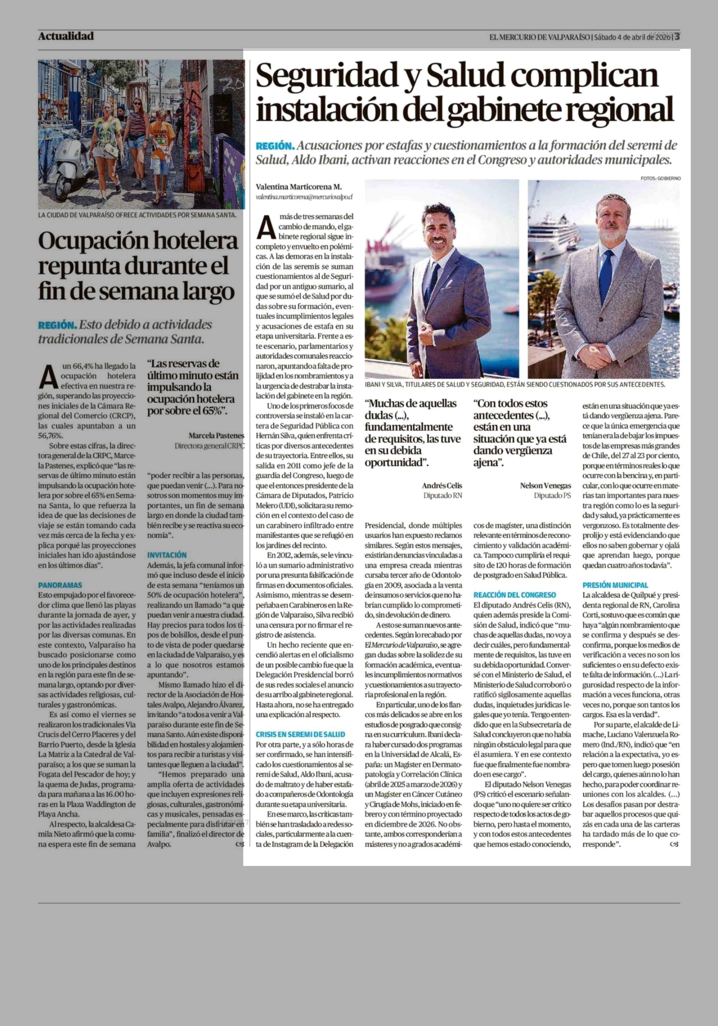 Seguridad y Salud complican instalación del gabinete regional 04-04-2026 El Mercurio de Valparaíso |