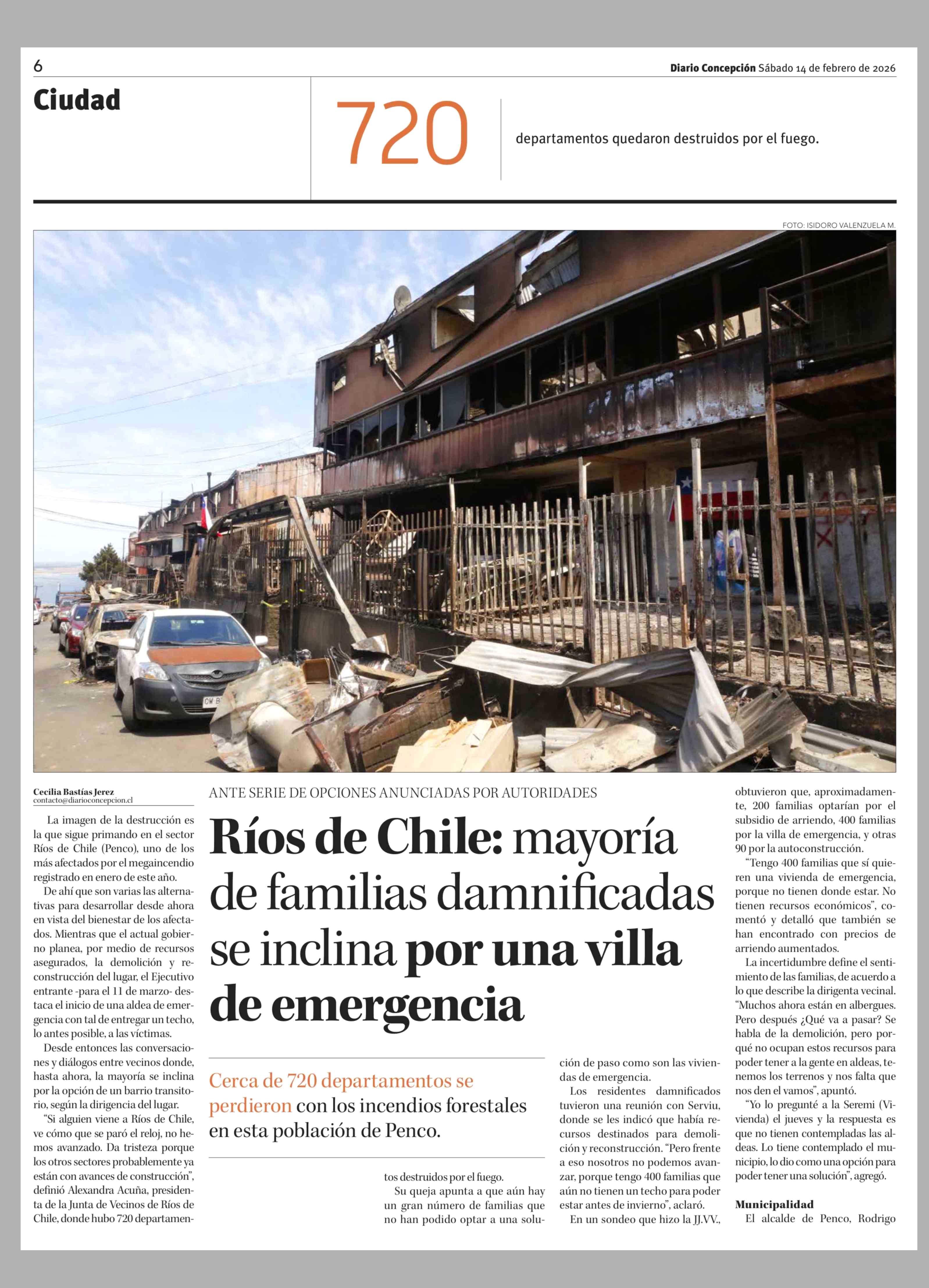 Ríos de Chile: mayoría de familias damnificadas se inclina por una villa de emergencia 14-02-2026 Diario Concepción |