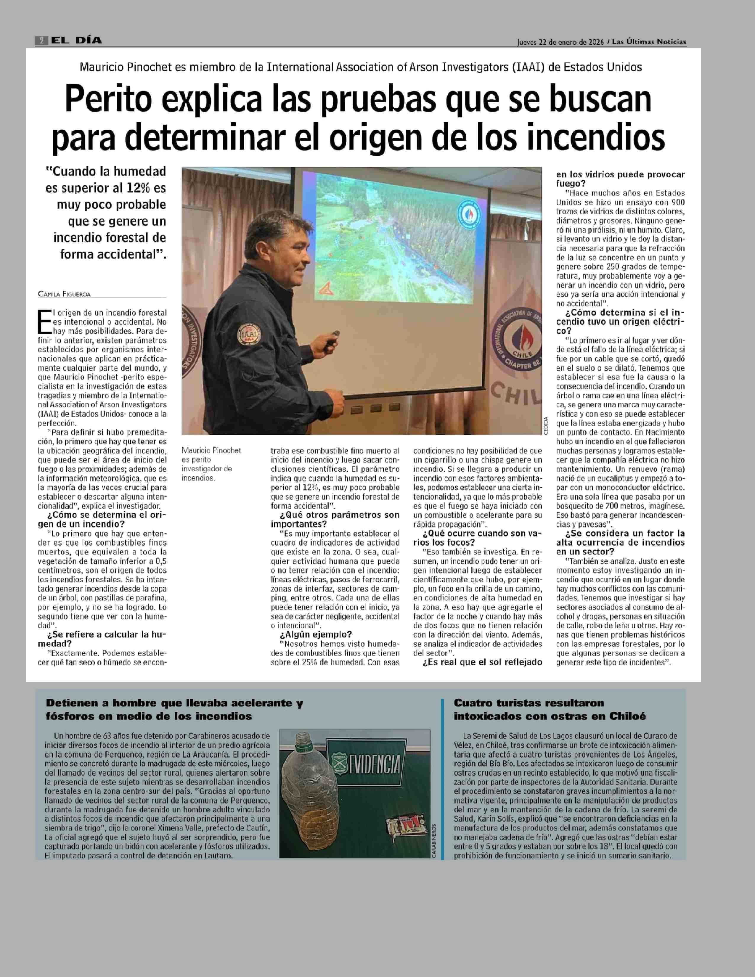 Título: Perito explica las pruebas que se buscan para determinar el origen de los incendios