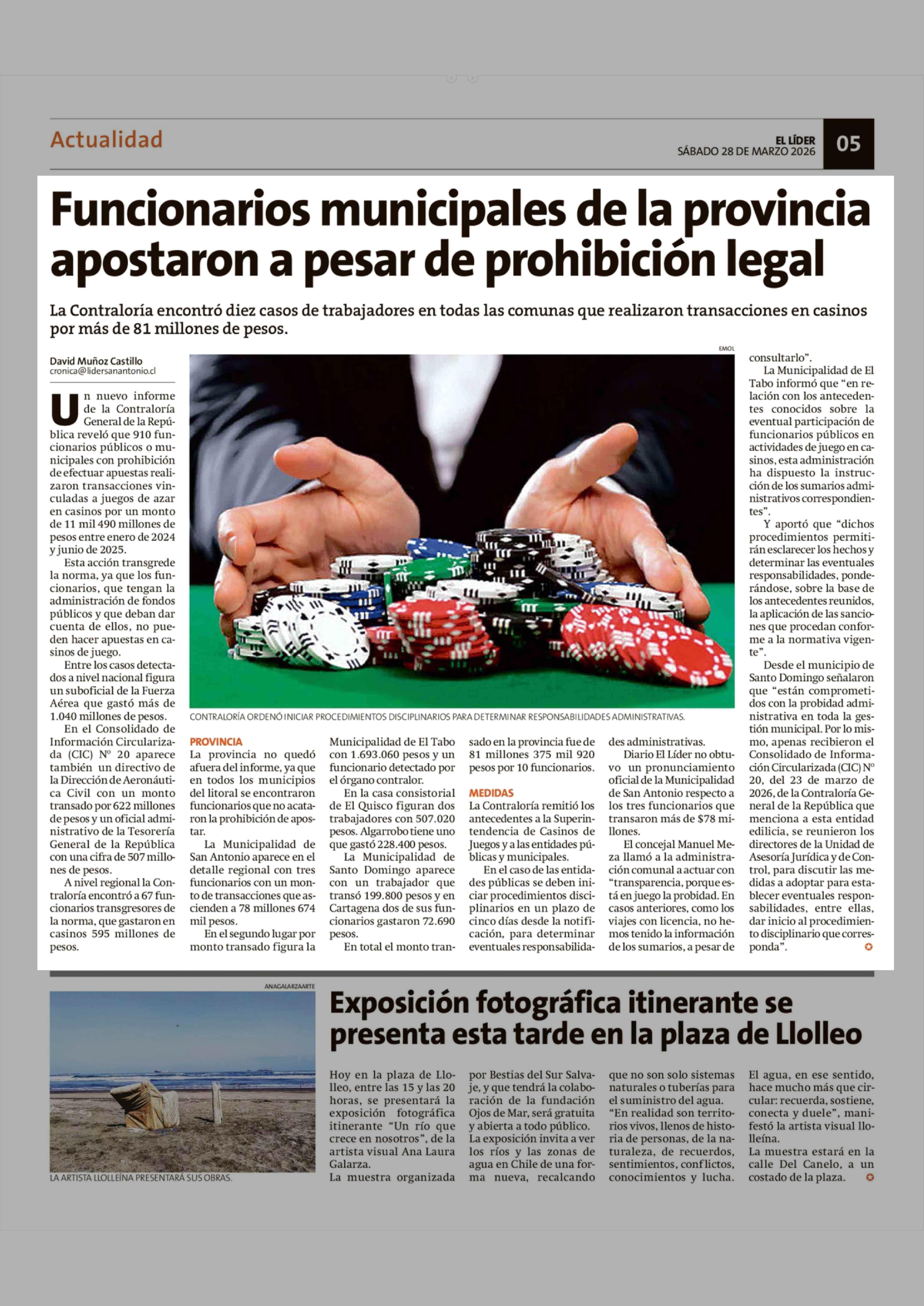 Funcionarios municipales de la provincia apostaron a pesar de prohibición legal 28-03-2026 El Líder |