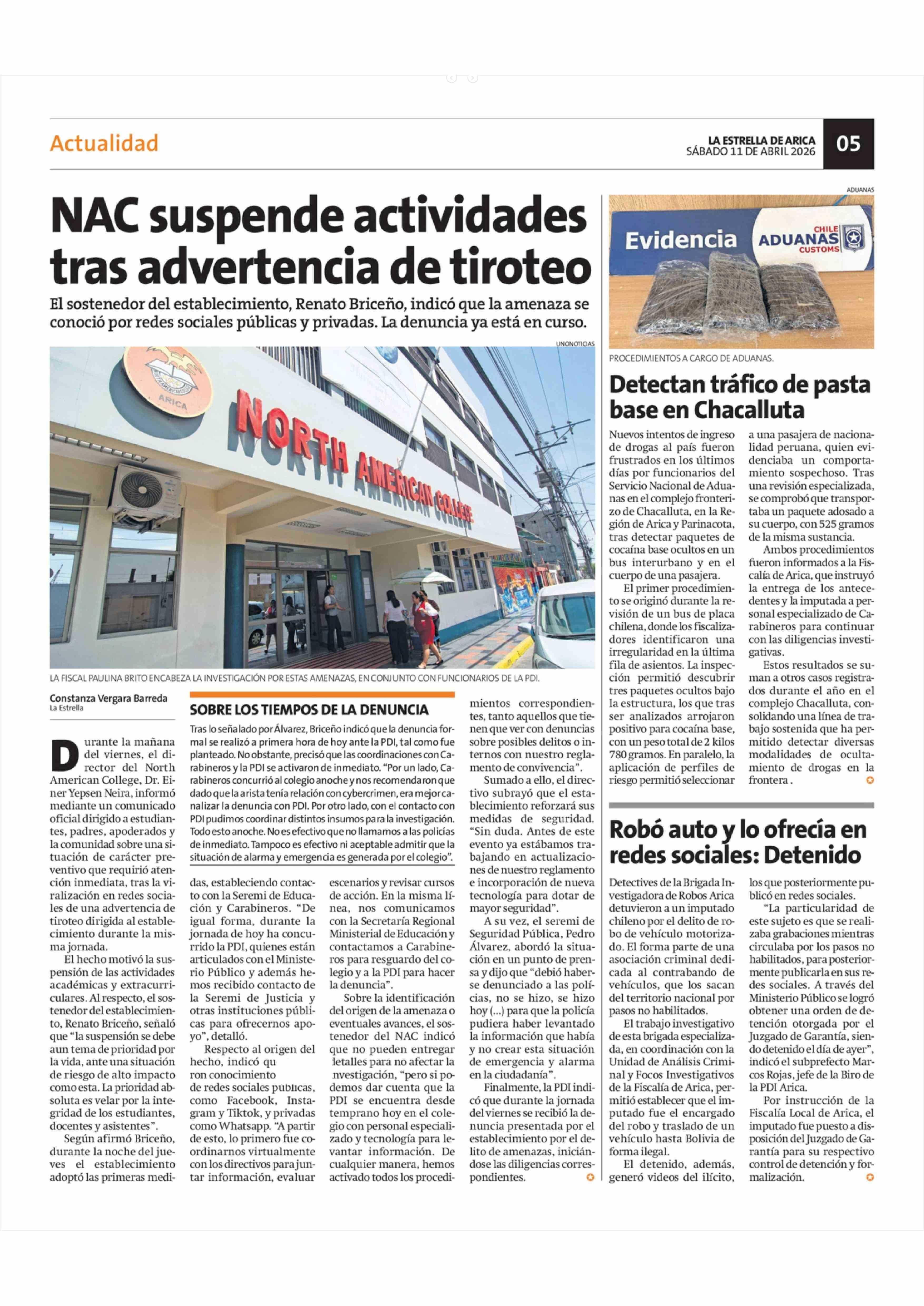 NAC suspende actividades tras advertencia de tiroteo 11-04-2026 La Estrella de Arica |