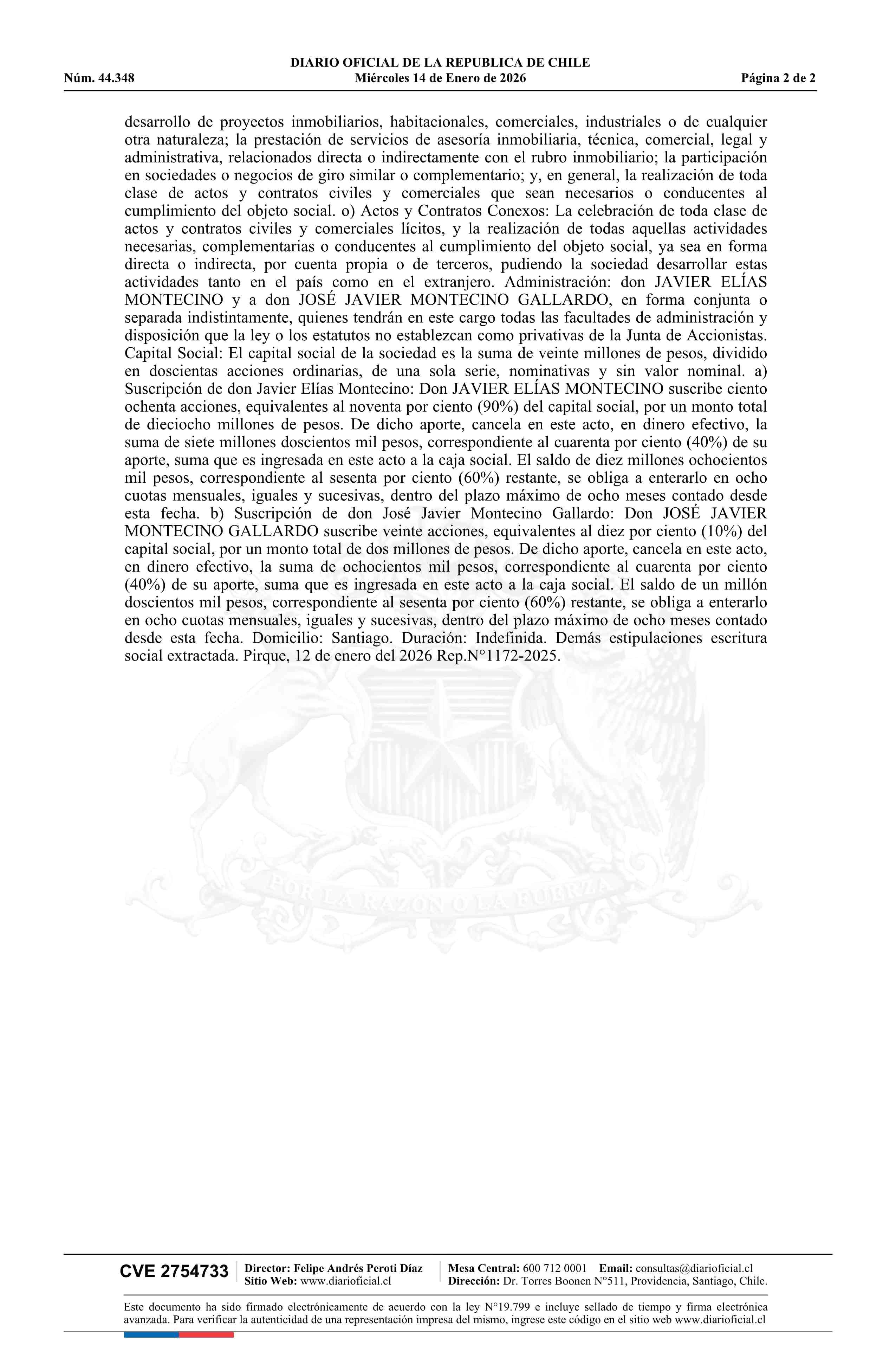 MONTECINO Y BERRÍOS SpA 14-01-2026 Diario Oficial Edición Electrónica |