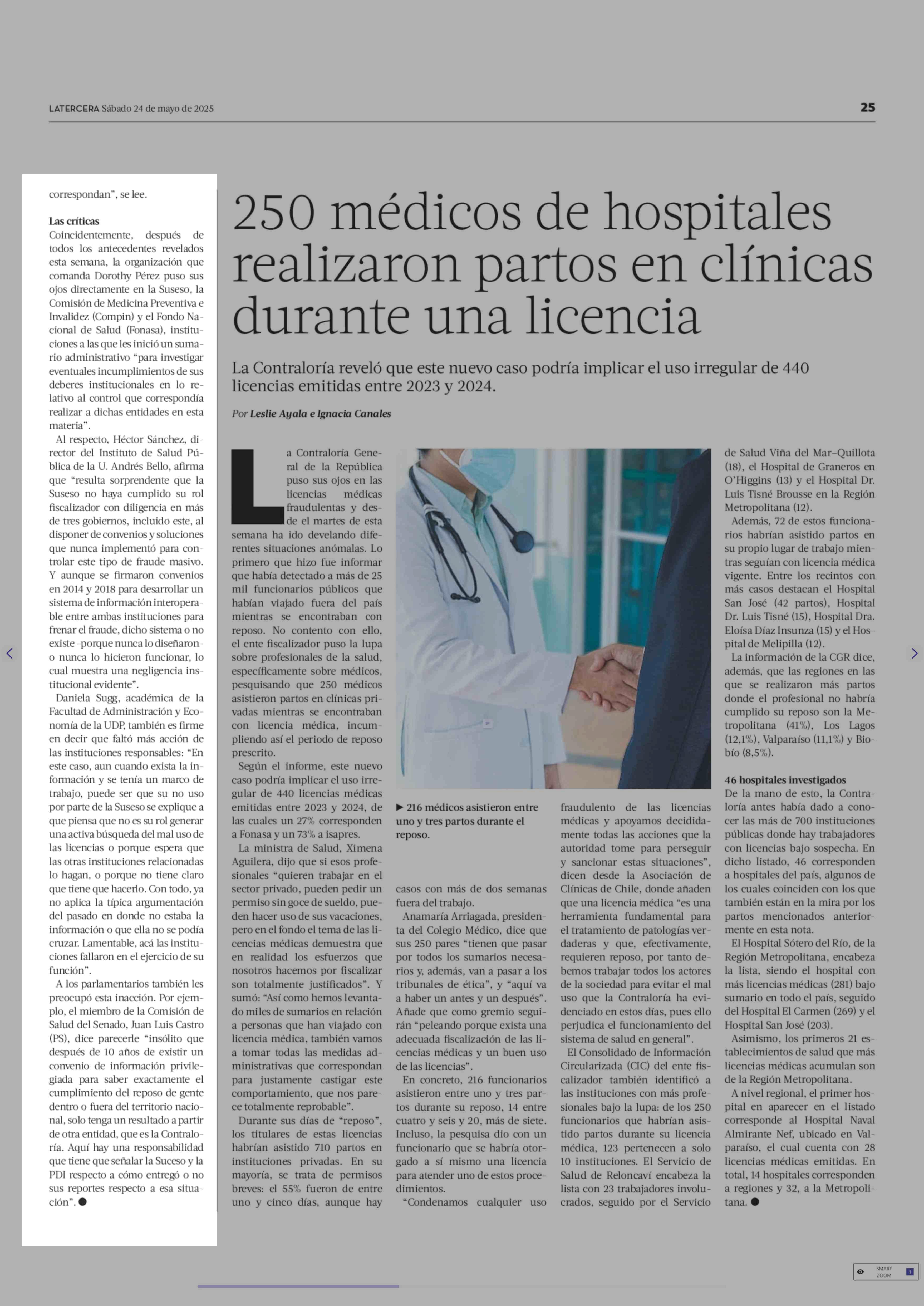 El convenio entre Suseso y PDI que pudo evitar el fraude de las licencias médicas 24-05-2025 La Tercera |