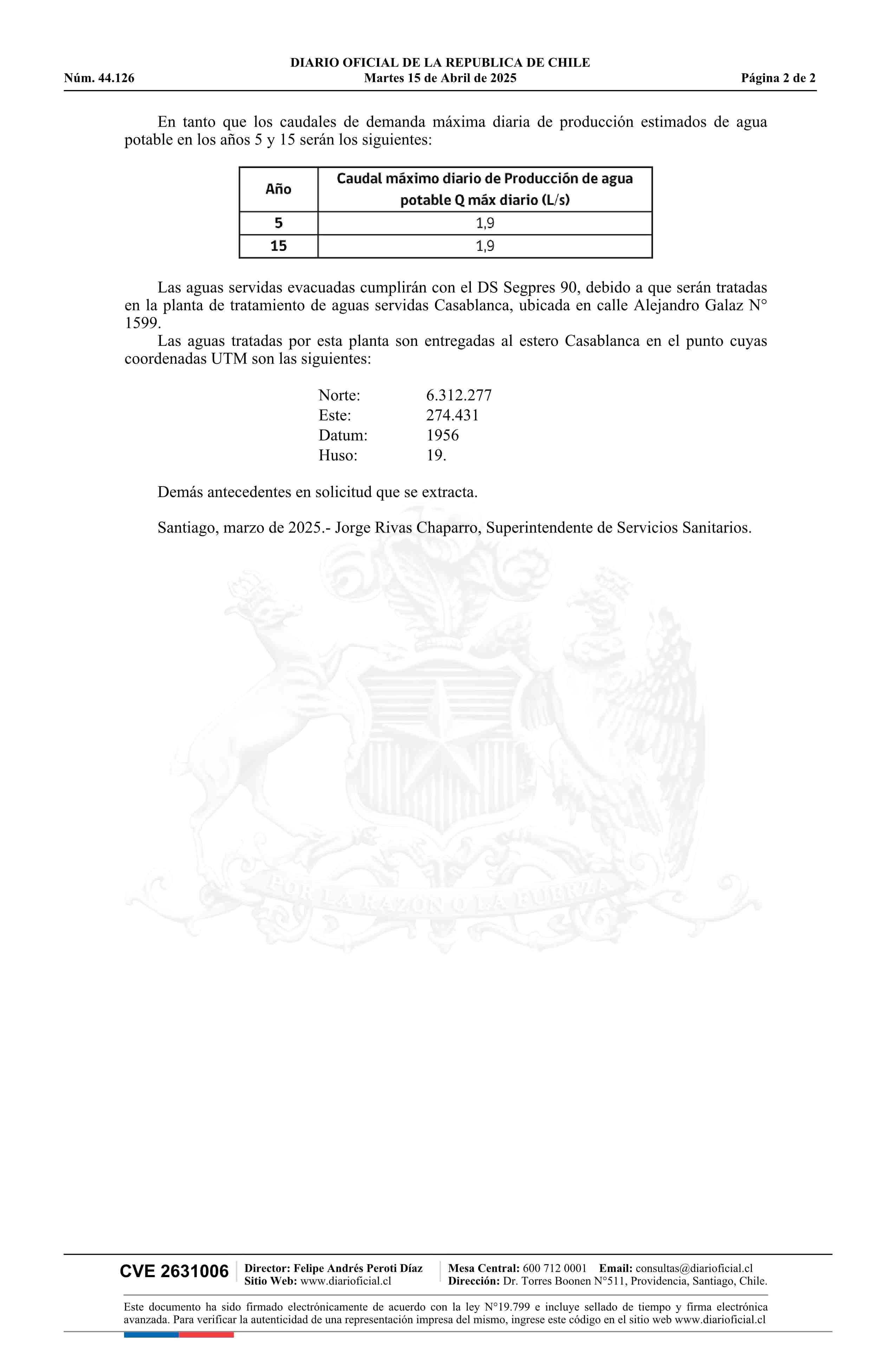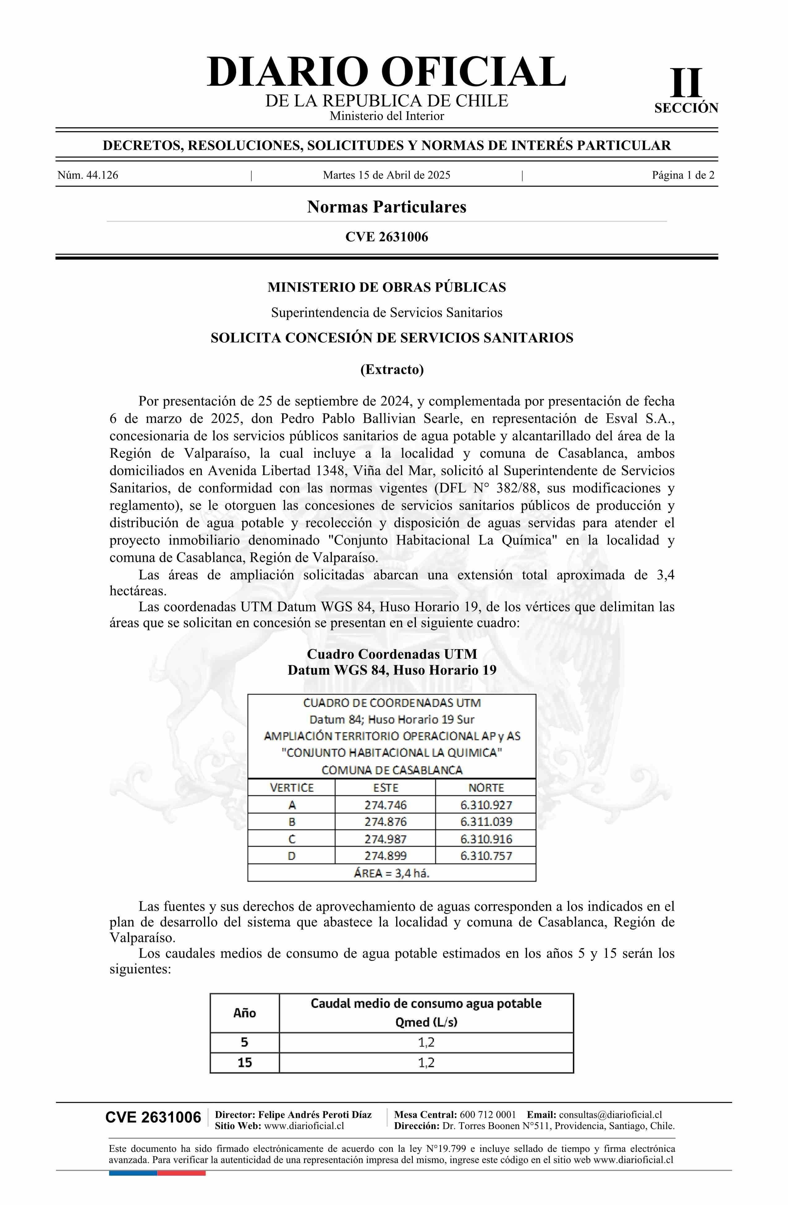 Solicitud Concesión de servicios sanitarios??????? 15-04-2025 Diario Oficial Edición Electrónica |