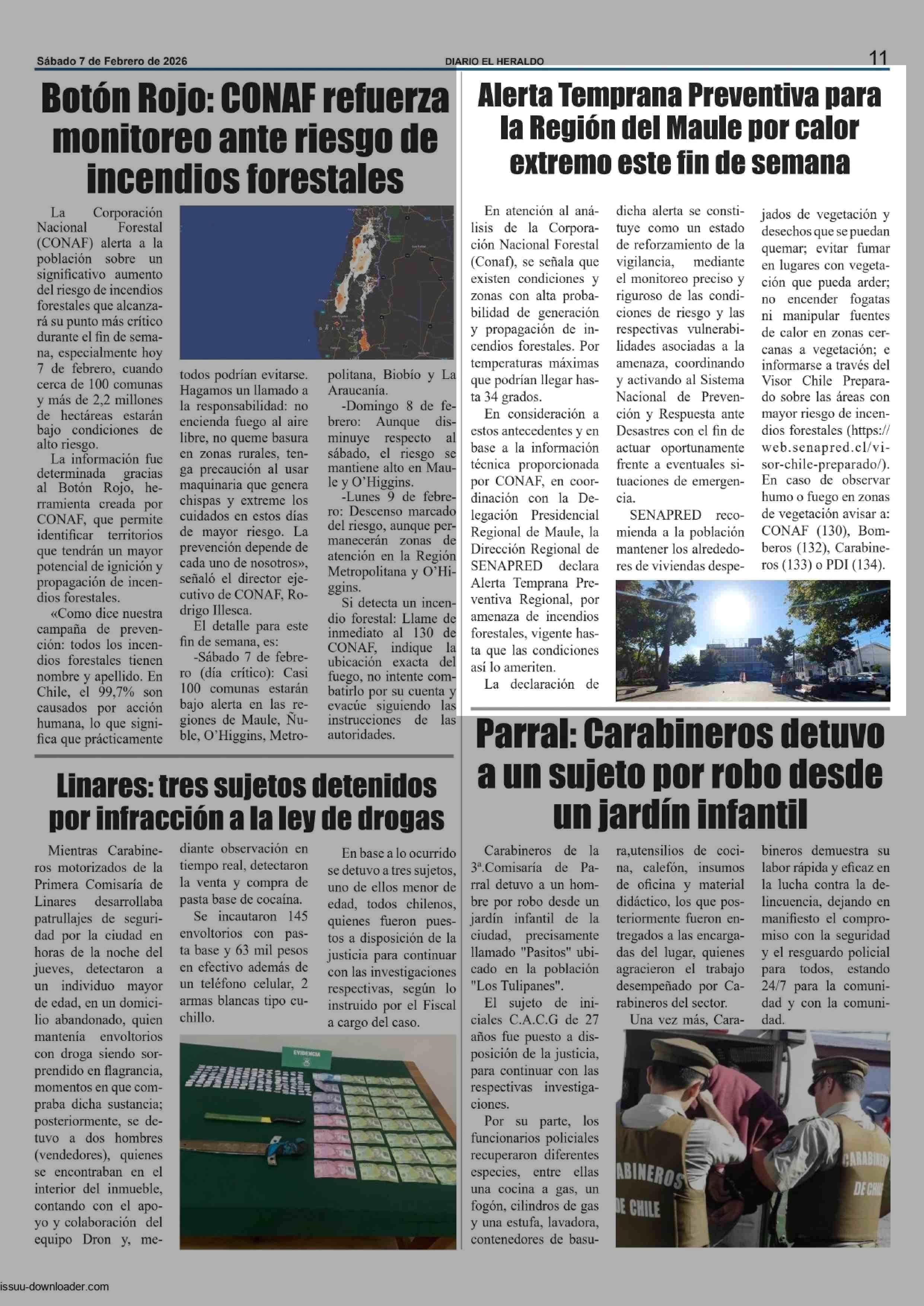 Alerta Temprana Preventiva para la Región del Maule por calor extremo este fin de semana 07-02-2026 El Heraldo |
