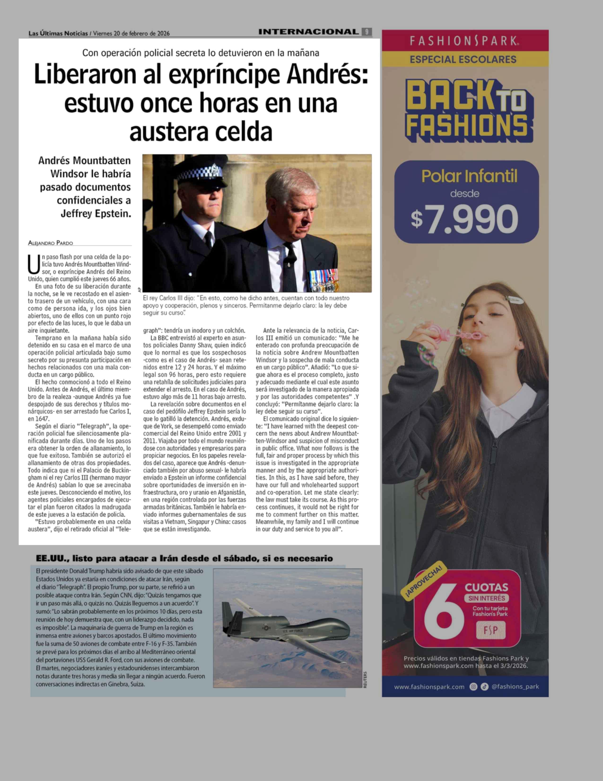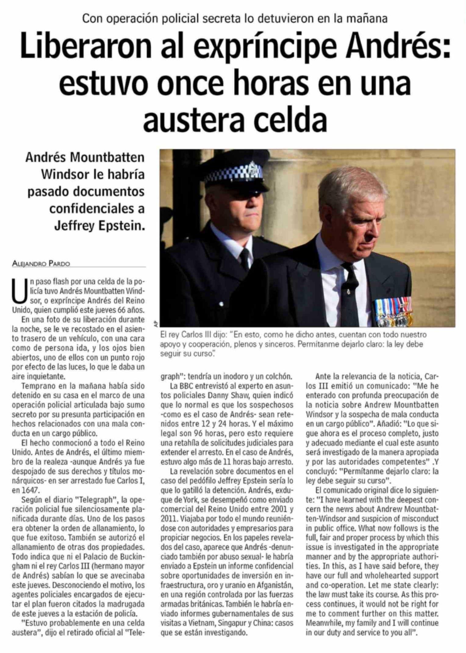 Título: Liberaron al expríncipe Andrés: estuvo once horas en una austera celda