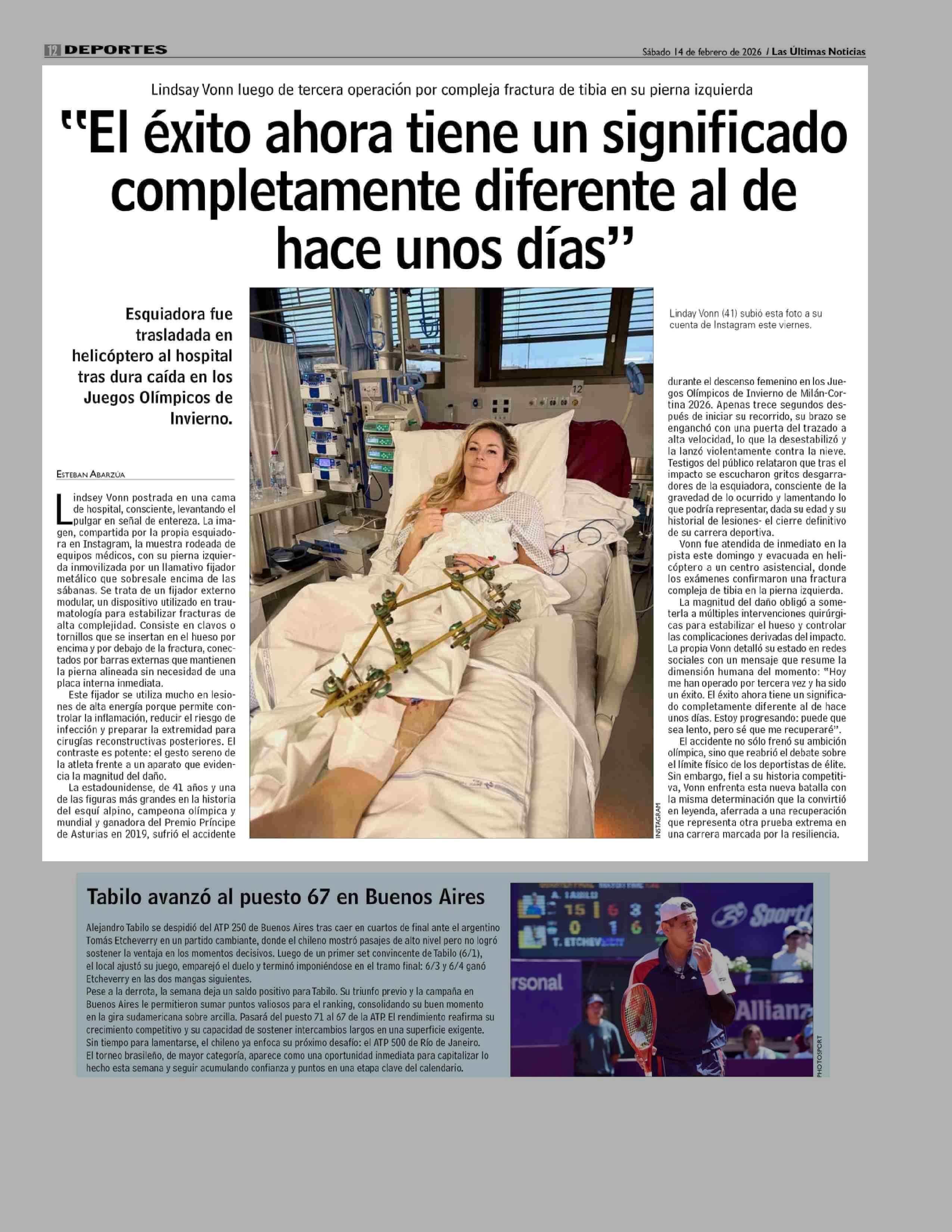 "El éxito ahora tiene un significado completamente diferente al de hace unos días" 14-02-2026 Las Últimas Noticias |