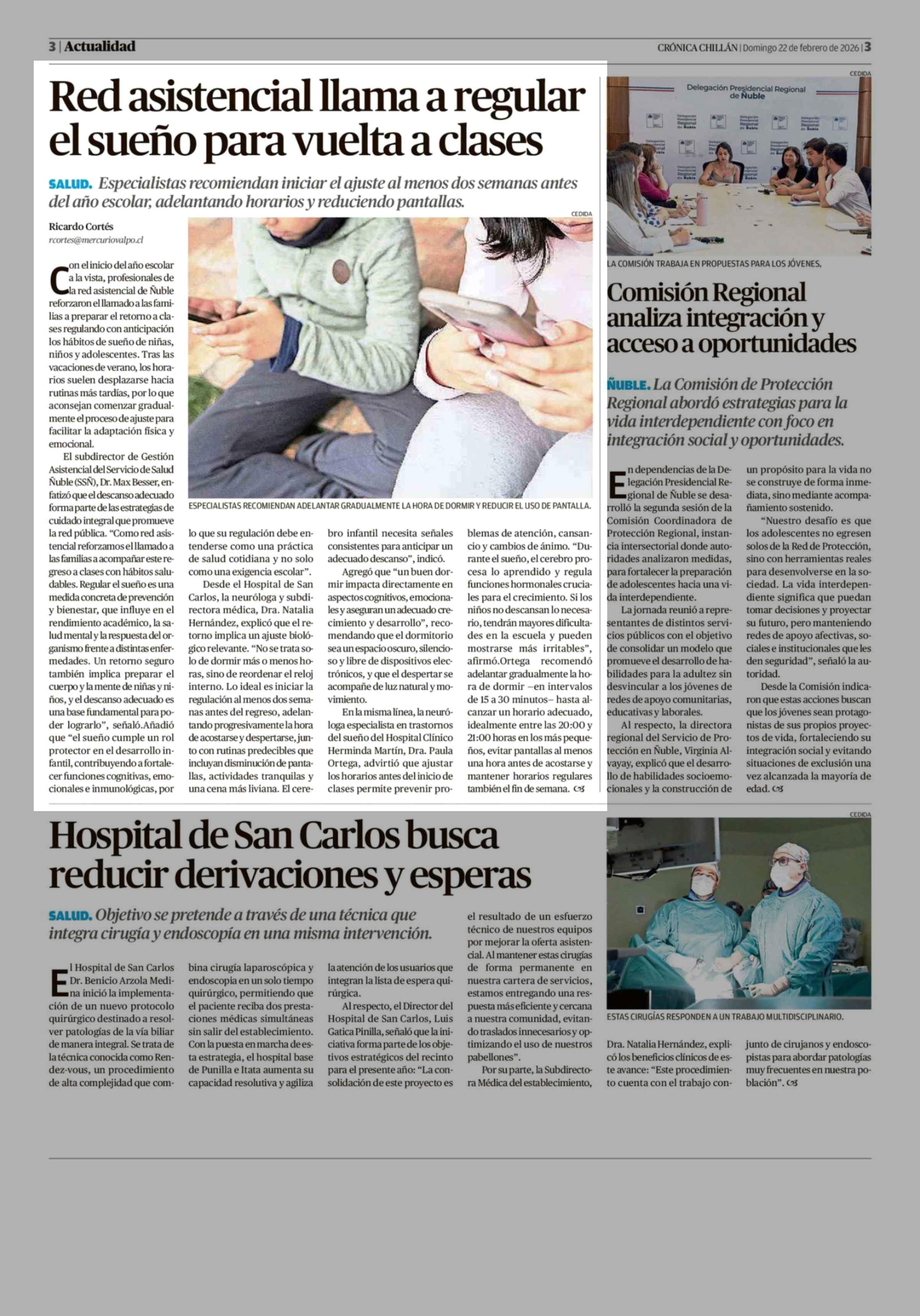 Fecha: 22-02-2026 Sector: Noticia general Región: Región del Ñuble