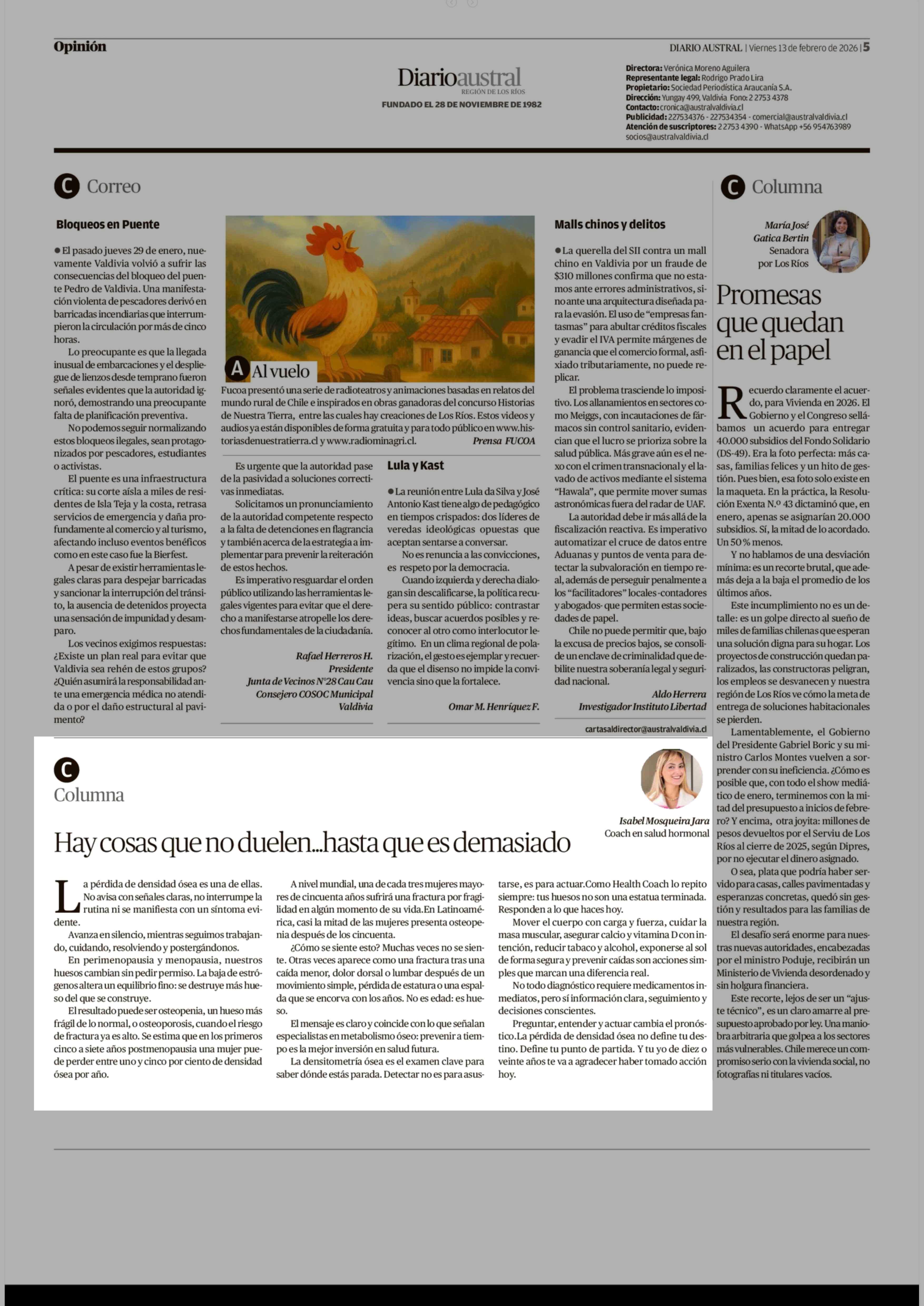 Fecha: 13-02-2026 Sector: Columnas de Opinión Región: Región de Los Ríos
