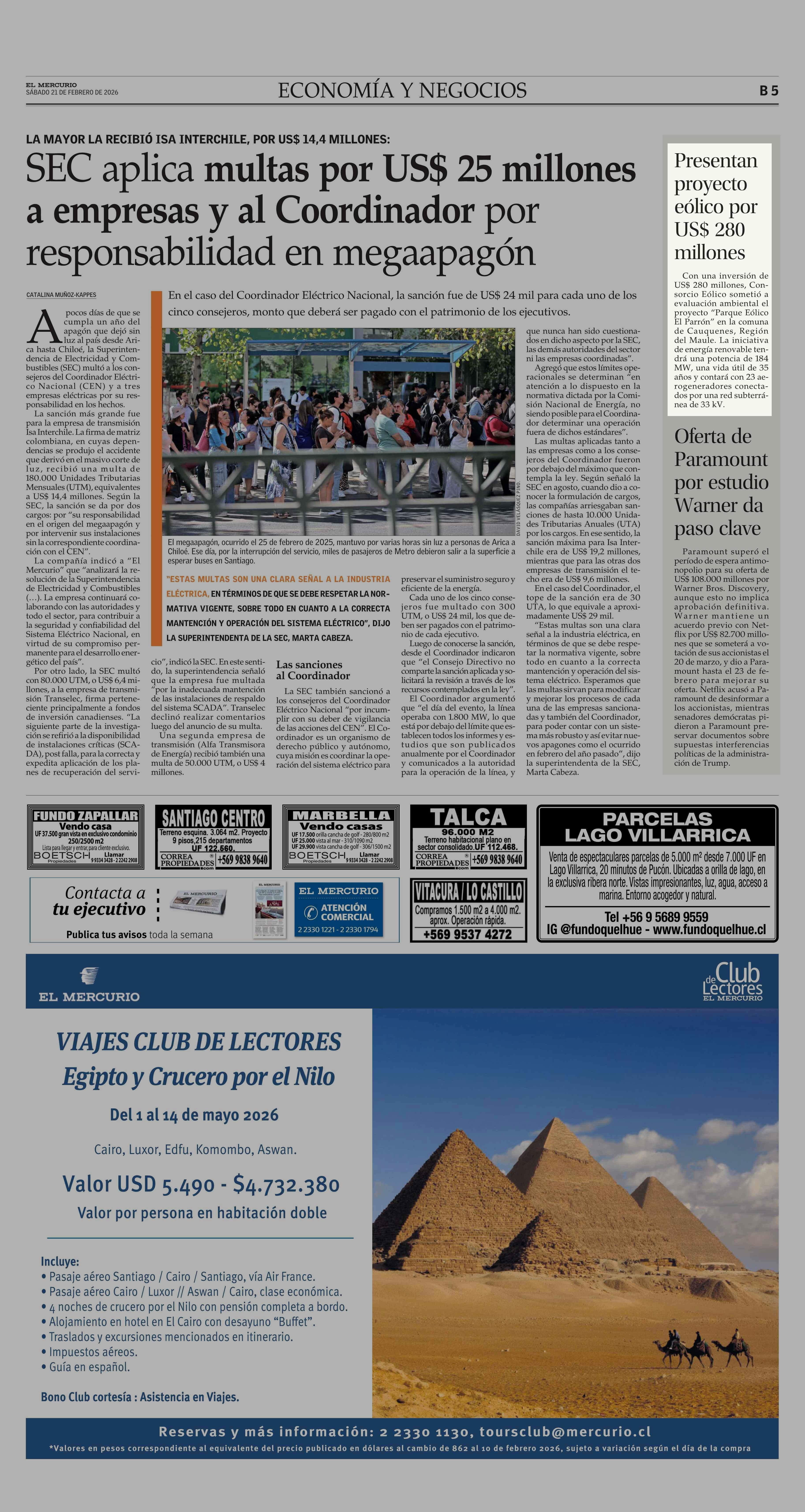 Presentan proyecto eólico por US$ 280 millones 21-02-2026 El Mercurio |