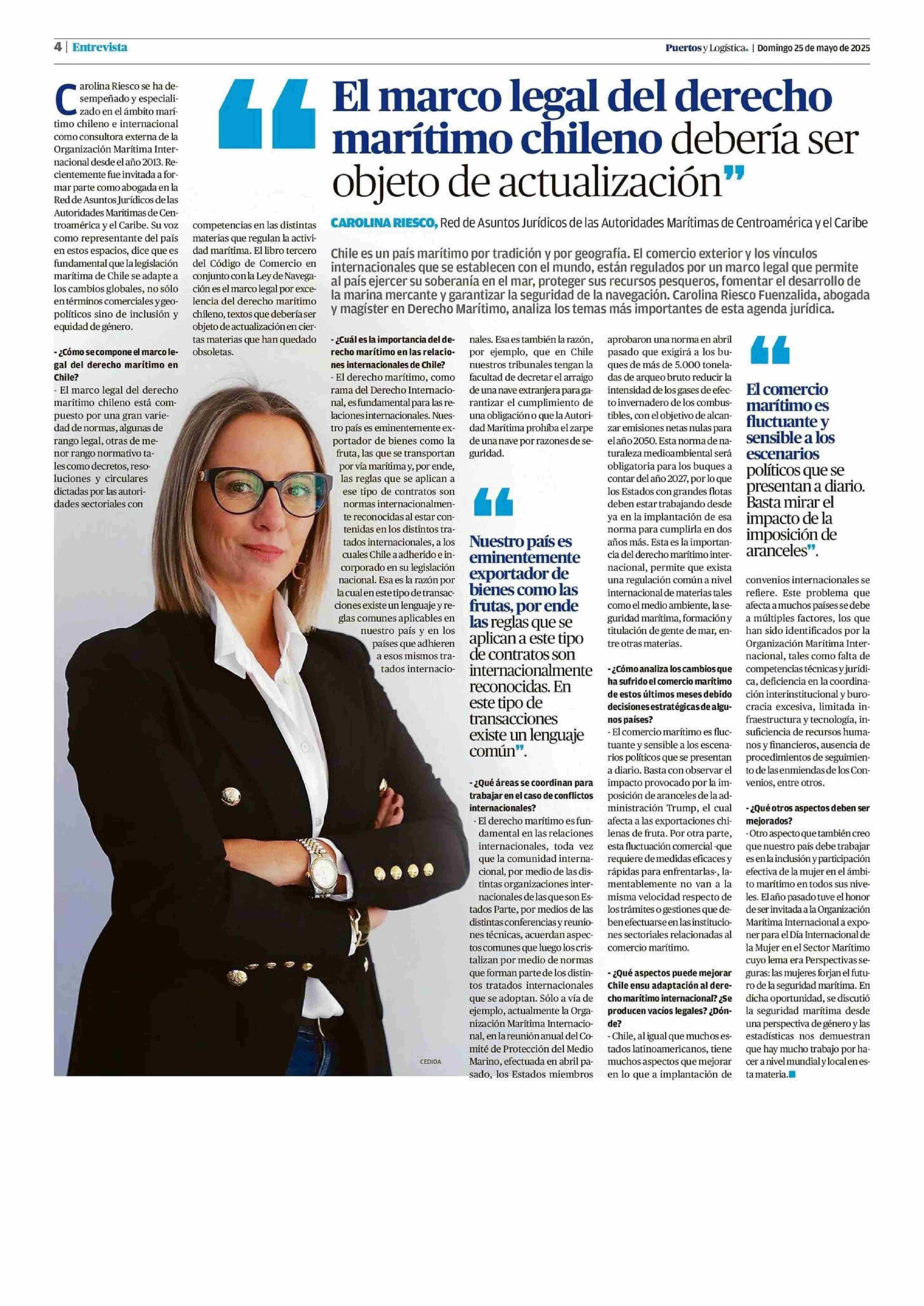 El marco legal del derecho marítimo chileno debería ser objeto de actualización” 25-05-2025 El Mercurio de Valparaíso |