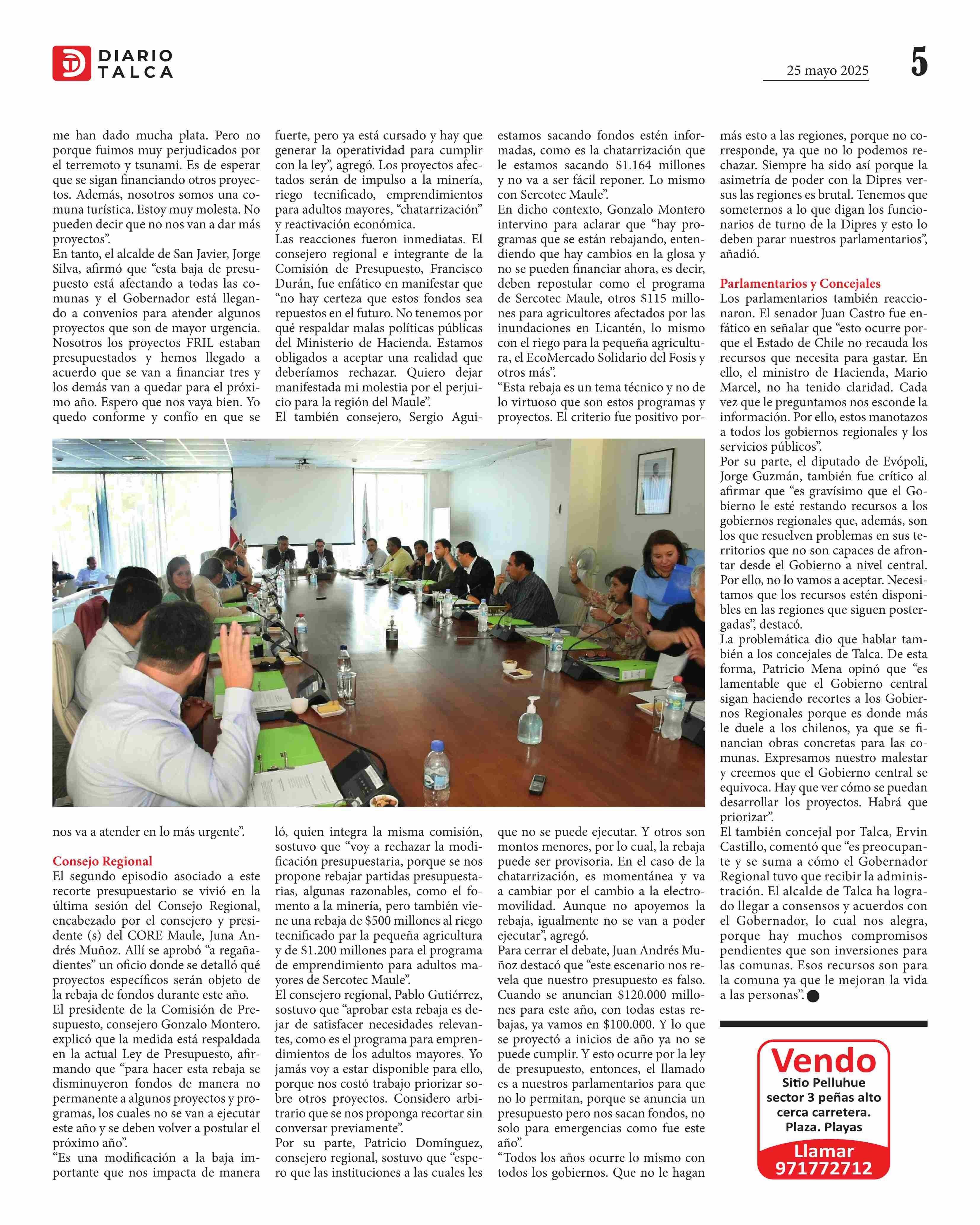 Rechazo político transversal por recorte presupuestario de casi $6.000 millones al Gobierno Regional del Maule 26-05-2025 Diario Talca |