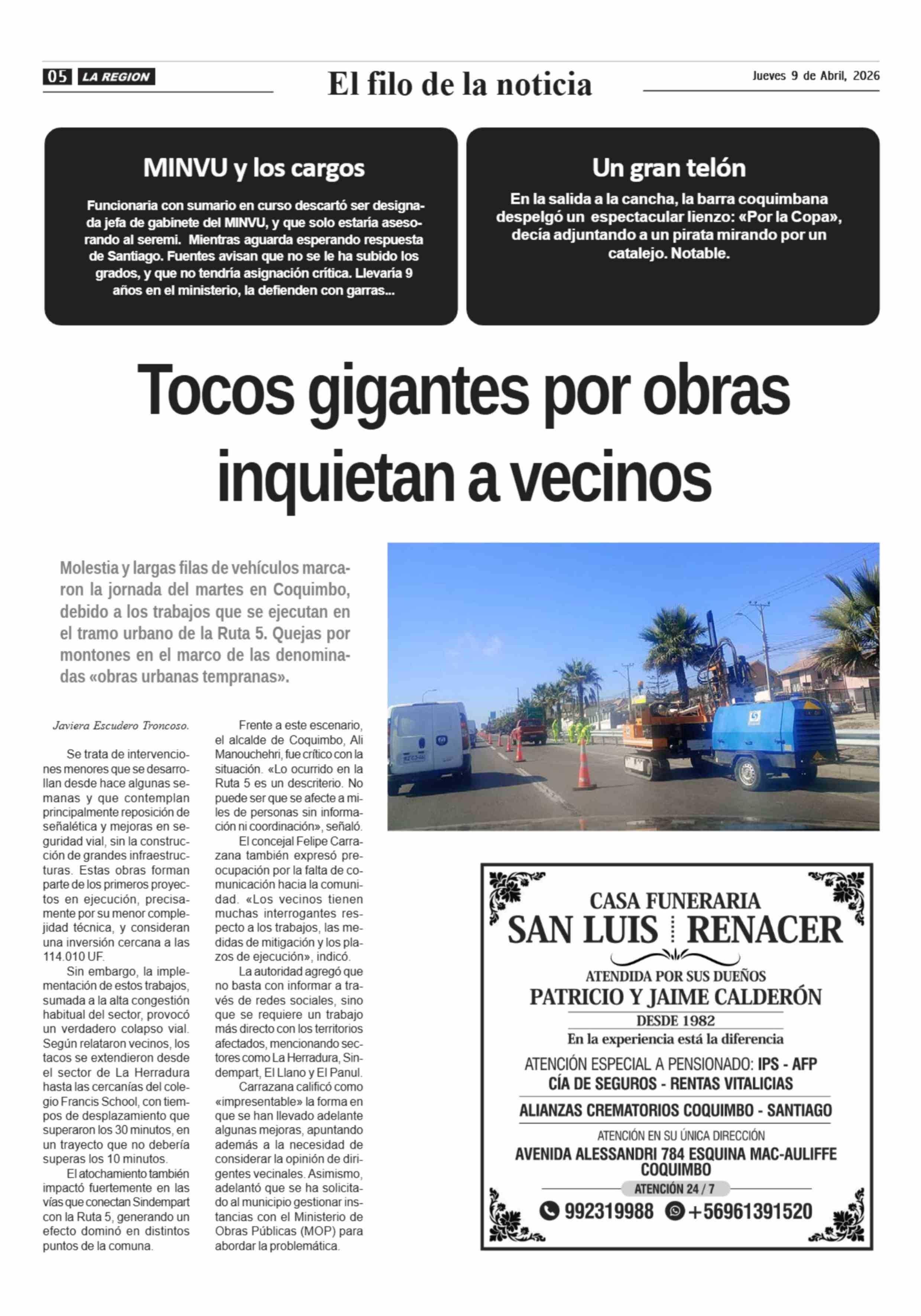 Tocos gigantes por obras inquietan a vecinos 09-04-2026 Diario la Región |