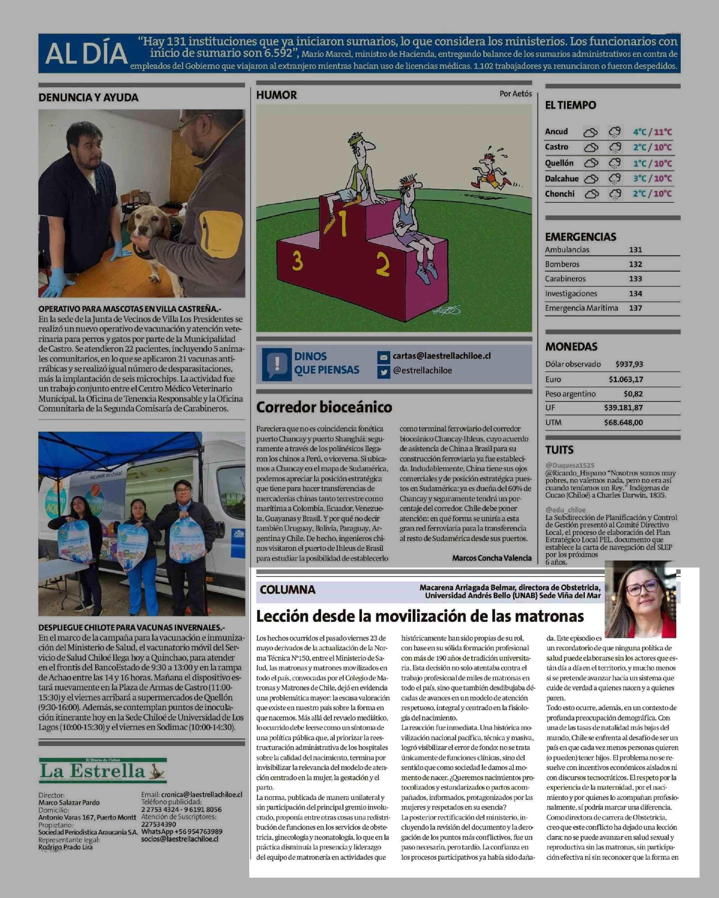Lección desde la movilización de las matronas 28-05-2025 La Estrella de Chiloé |